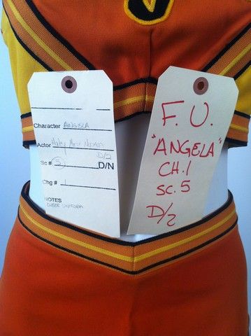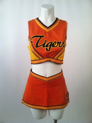 Angela (Hayley Marie Norman) plays one of the major competitors in the Cheerleader Camp comedy "Fired Up" (2009). This is her hero Tiger's cheer uniform and shoes. Includes the original production wardrobe tag.