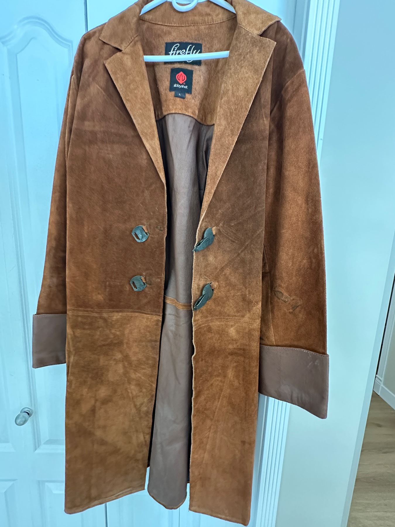 Firefly large brown suede jacket. Cannot authenticate