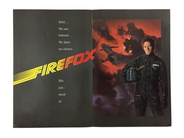 Firefox (Warner Bros.,1982). An extremely rare oversized movie Publicity and Promotional Book including the original envelope designed by Bill Gold Advertising. Starring: Clint Eastwood. The book has creases and minor edge wear damage. Excellent. The envelope has stains, paper loss and edgewear damage. Very Fine. (12.5" X 19").