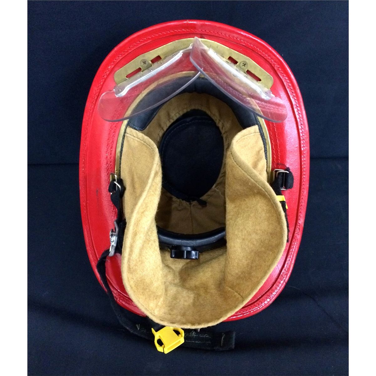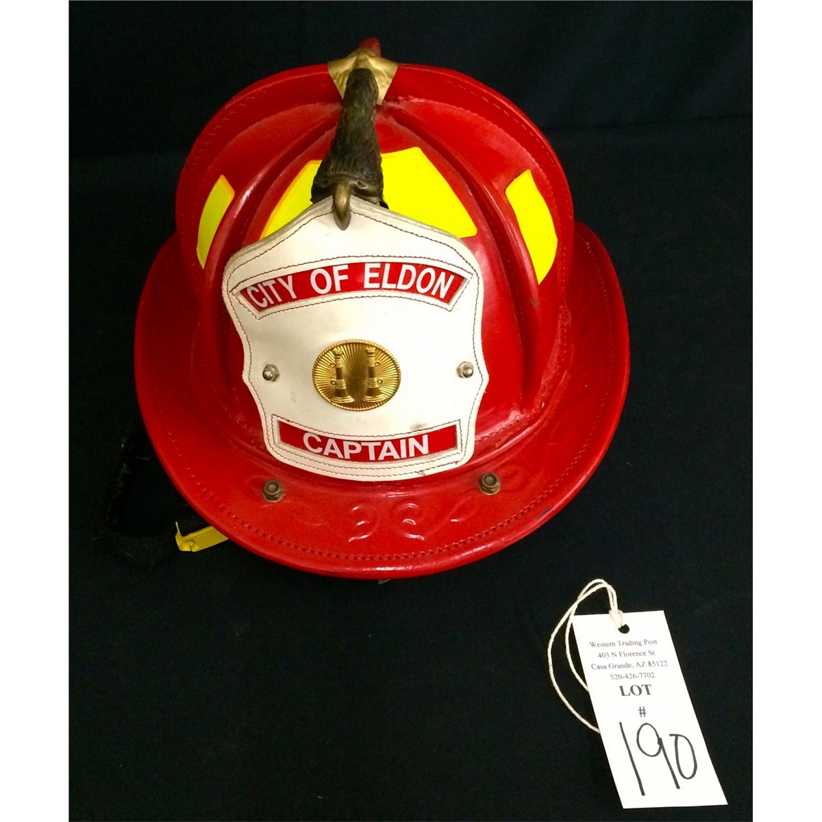 The fireman's helmet is authentic and has a badge on the front from the city of Elgin and states “captain” (a captains helmet). The rope is thrown in, just in case you wish to put the helmet on and go and rescue someone. LOL