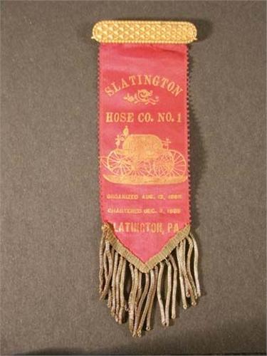 Fireman's badge/ribbon, 1885 Slatington, PA. Ex. cond.