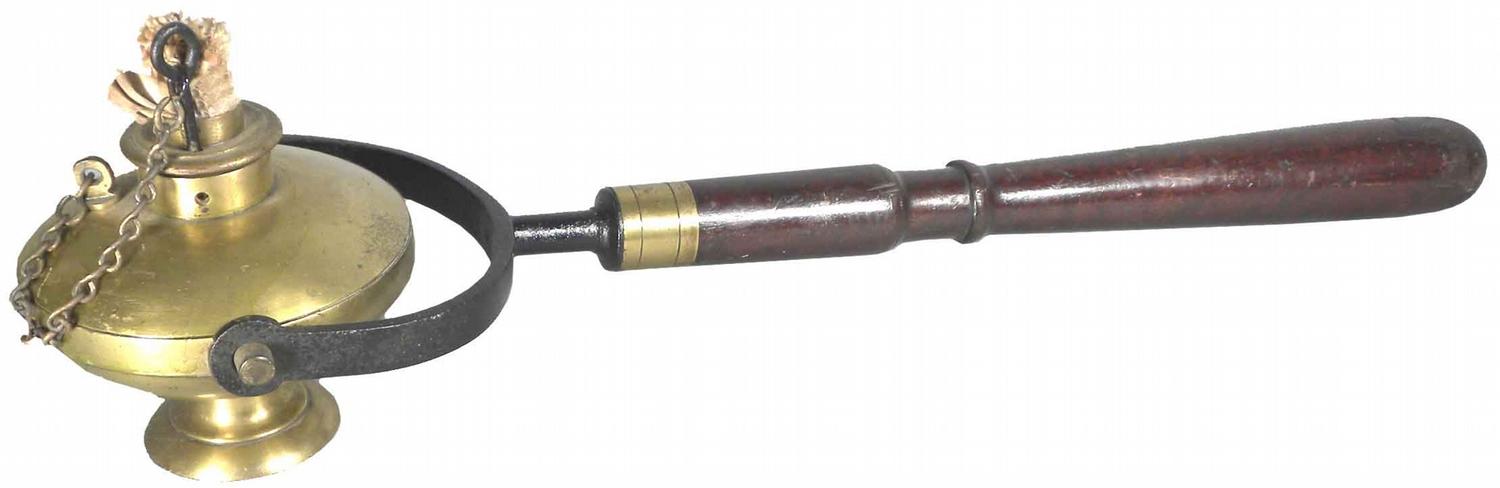 Firemen's Parade Torch. Wood, brass and forged iron. Excellent condition. 21 inches long.