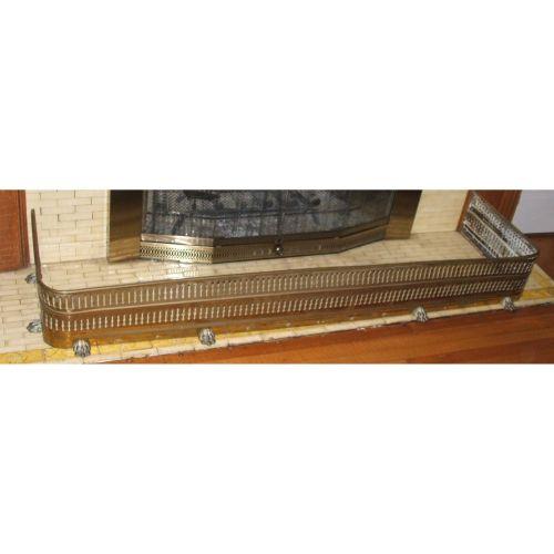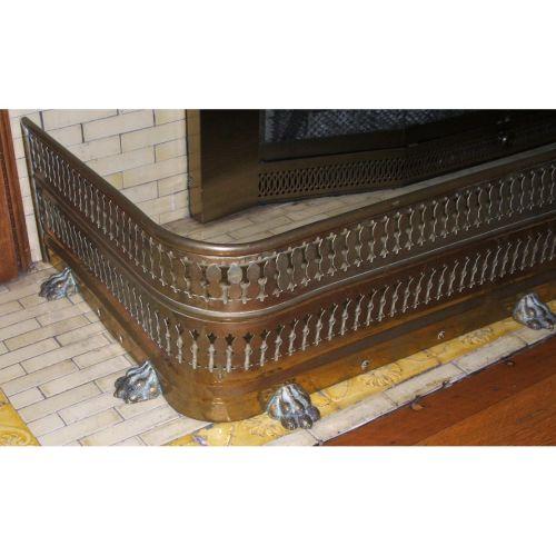 American. Federal/Empire. 19th century. Cast brass. Nice large D shaped brass fender with eight paw feet and a tall, pierced grill. 8" high X 66" wide.