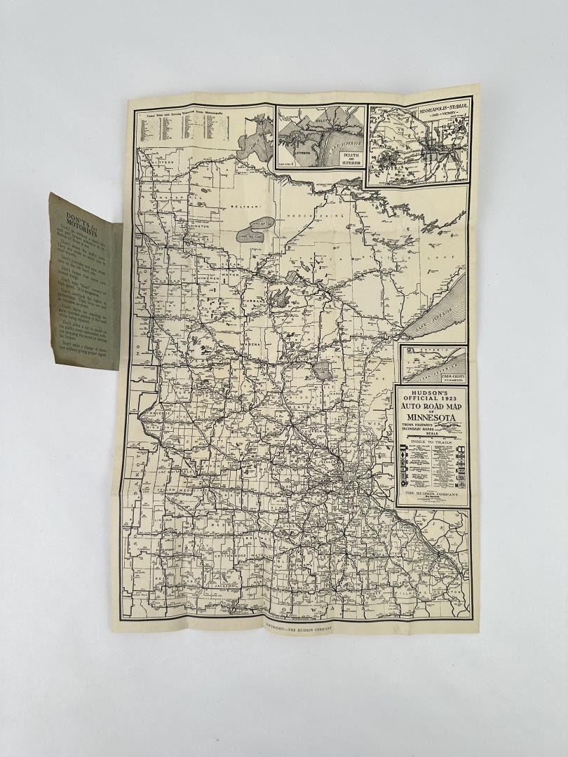 Auto Roads of Minnesota. Compliments of Nicollet Tire Service. Hudson's Official Auto Road Map 1923