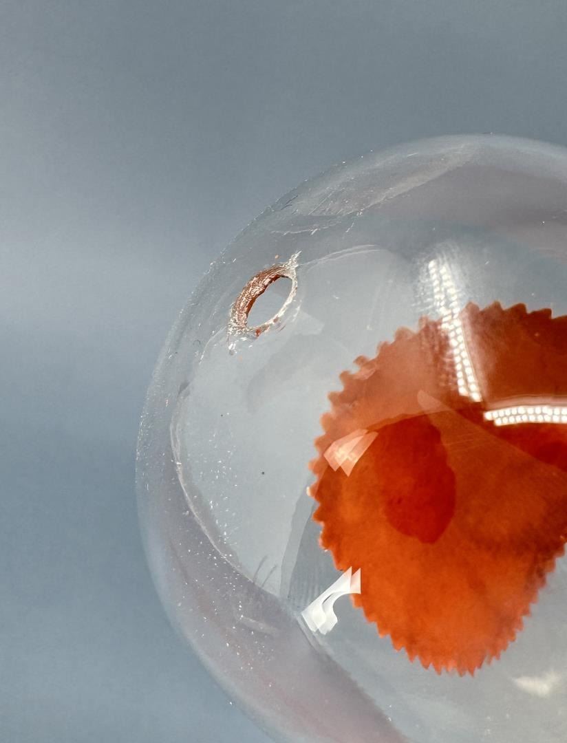 Globe has been drilled and emptied of contents. 9 1/8" long by 3 1/4" wide