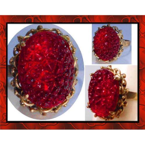 <tr><td><font size="2" face="Arial, Helvetica, sans-serif"><strong><font color="#000033">Title:</font></strong>Firey RED czech MOLDED GLASS Vintage RING</font></td></tr>