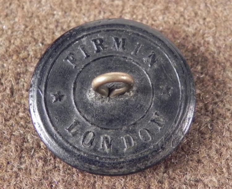 Antique rubber button * * Obverse: Tall bird holding a branch in its beak, with laurelsReverse: FIRMIN, LONDONDate: 1800'sDiameter: 23 mmCondition: Good; holes on front- (manufacturing flaw?)
