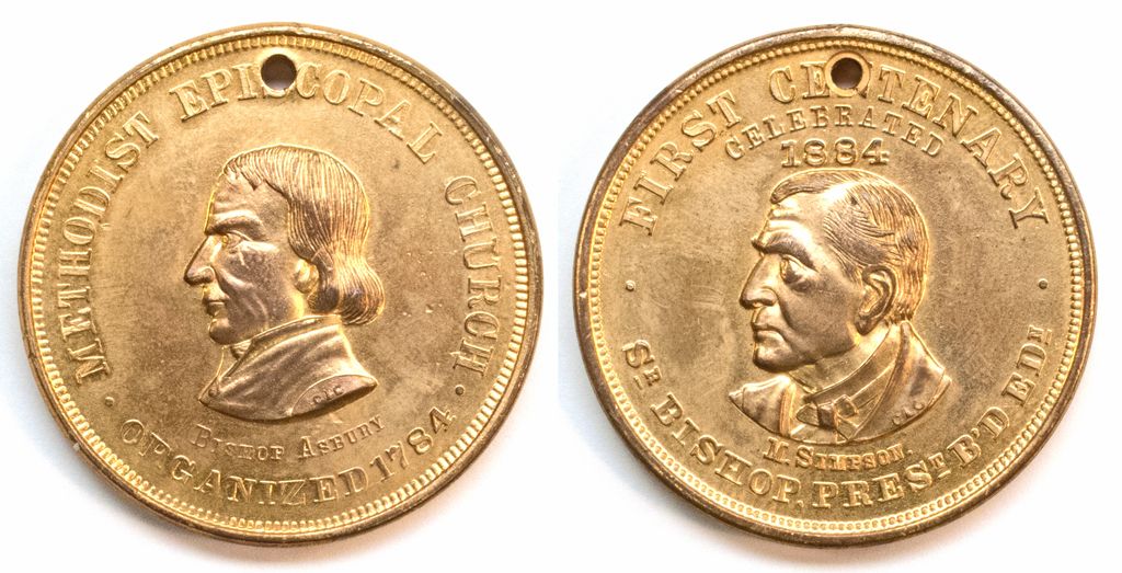 Gold metal piece from StBishop, Pres. First Centenary. Metlodist Ephospical Church.