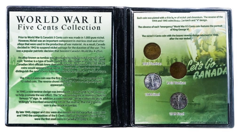 First Commemorative Mint Canadian Five Cents Collection from World War II