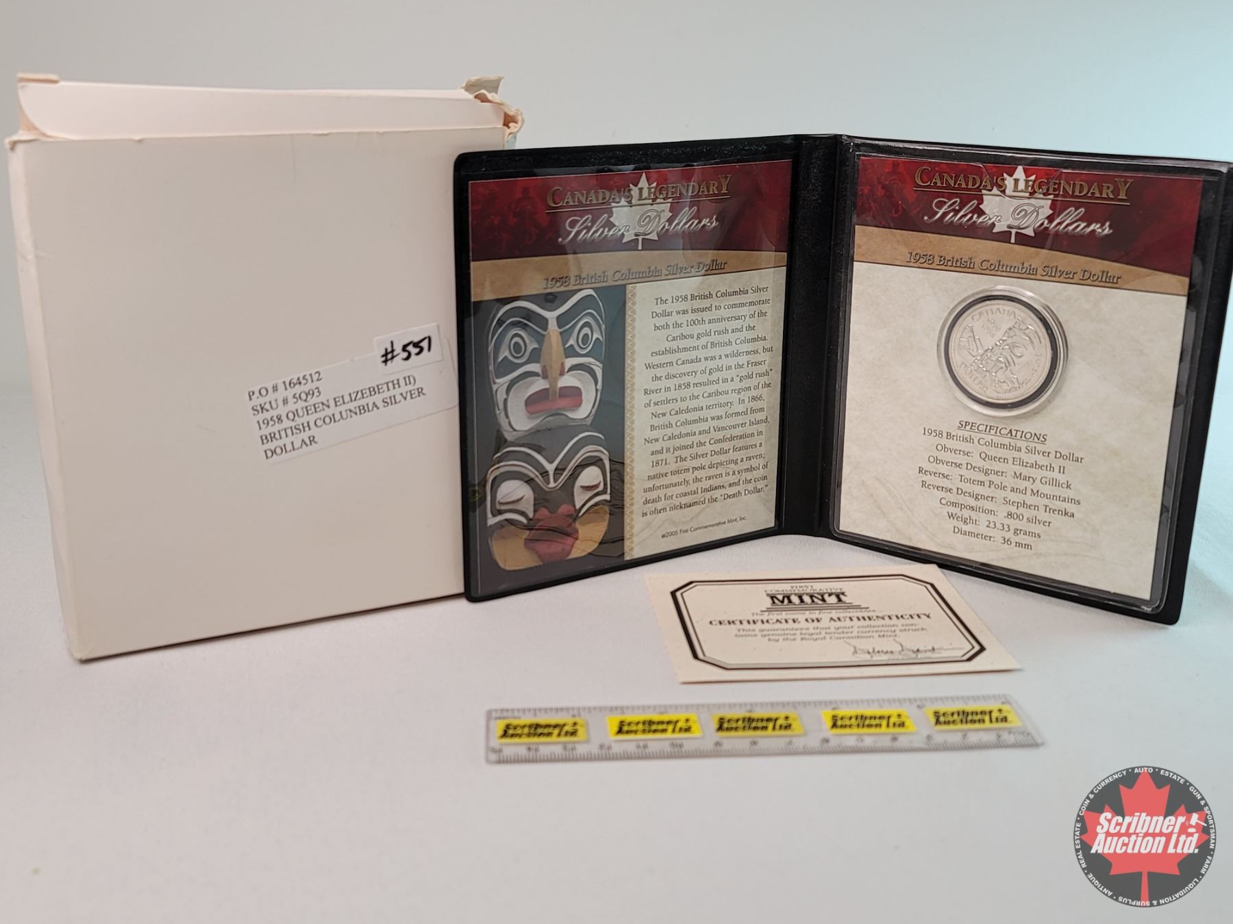 "1959 British Columbia Silver Dollar" (with COA) (SEE PICS!)