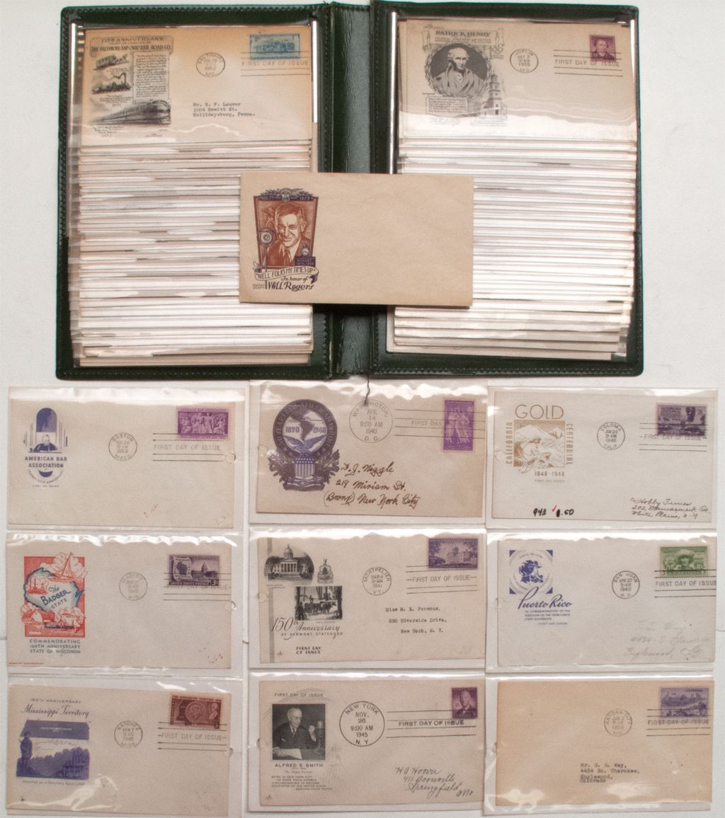 Lot of 100 including: Pan-American Union 50th, Alfred E Smith, US Merchant Marines, American Automobile Association, Will Rogers, Women in the Armed Services, first bi-colored small denomination postage stamp, and many state anniversaries.City: County: State: