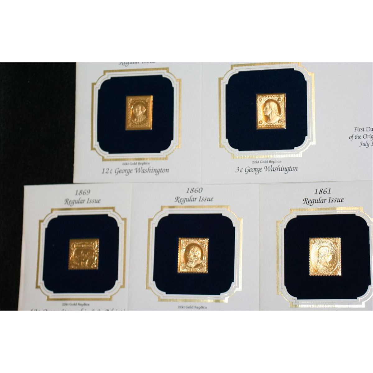 First Day of Issue, Gold Plated Stamps, Lot of 5