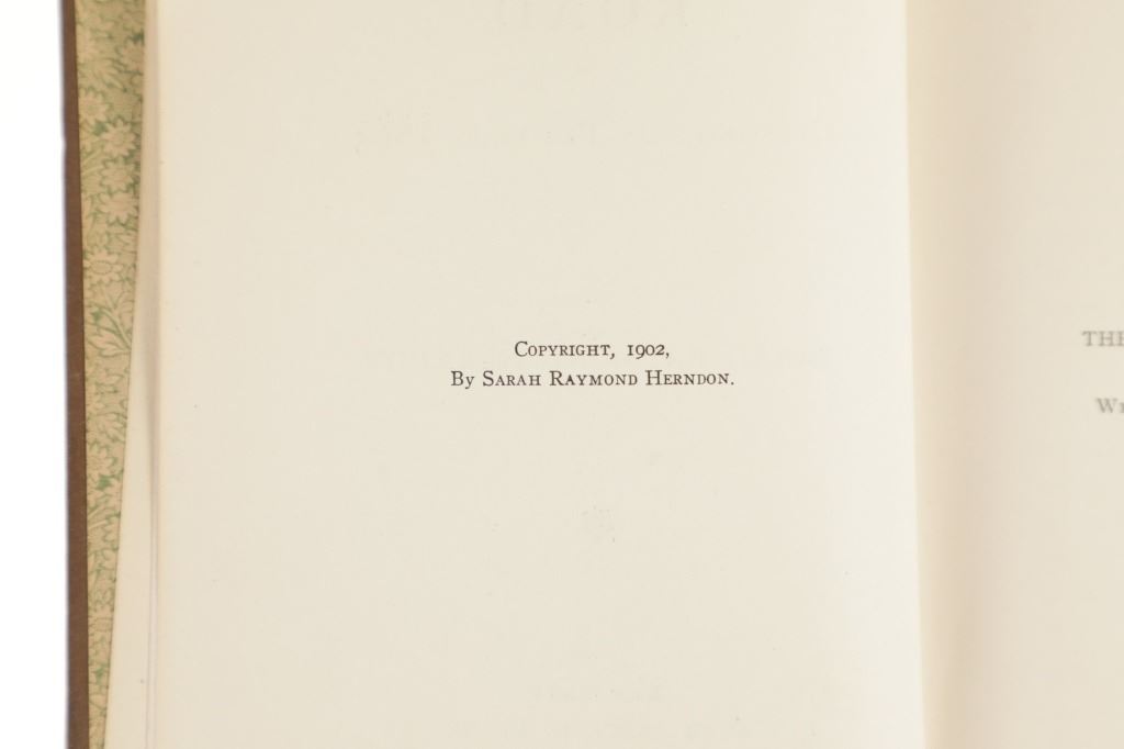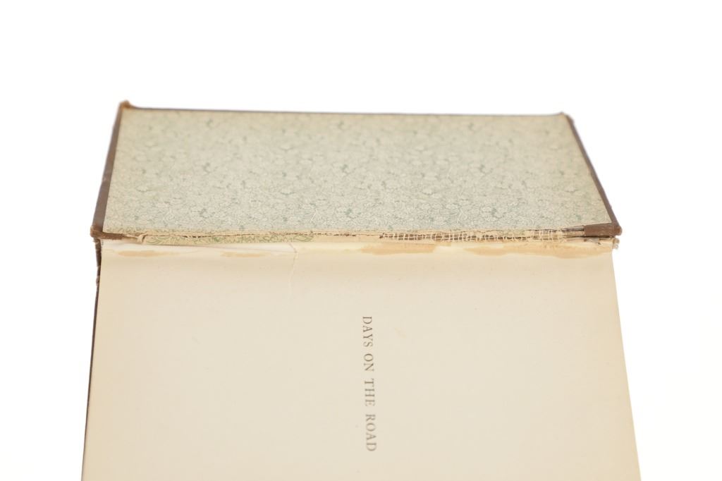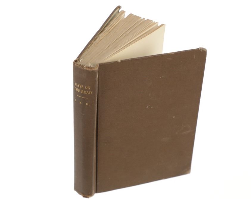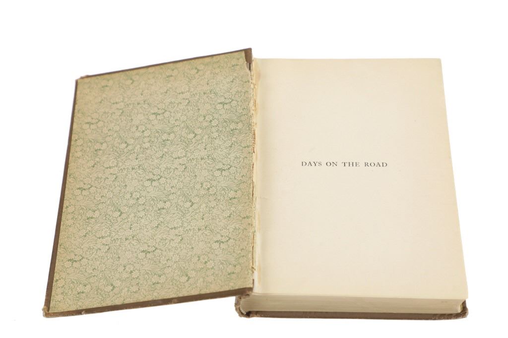 For your consideration is this first edition of "Days On The Road" by Sarah Raymond Herndon, published by the Burr Printing House in New York in 1902 and copy-righted by the author the same year. On May 1, 1865, Sarah Raymond mounted her beloved pony and, riding alongside the wagon carrying her mother and two younger brothers, left war-torn Missouri and headed west. With the sole motive of bettering themselves, the Raymonds began their journey undecided as to whether California or Oregon would be their ultimate destination. By the middle of June, however, they had been persuaded that Montana was in fact the place to make for and the train altered path accordingly. Sarah Raymond Herndon (1840-1914) arrived in Montana at the height of the Gold Rush in 1865. After teaching there for one school year, she married James M. Herndon in 1867. In addition to Days on the Road she also kept a diary of her experiences in Virginia City. The book shows a brown colored, canvas hardcover with the title and the authors initials on the spine of the book in gold gilt lettering. The book shows good condition for its age with no signs of obvious damage. The edges of the cover have some wear from its vintage age and use. The interior pages are in good condition with no signs of tears or foxing. The book measures 7 1/8" L x 5 1/8" W x 7/8" D.