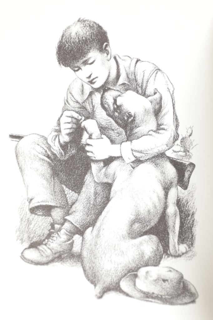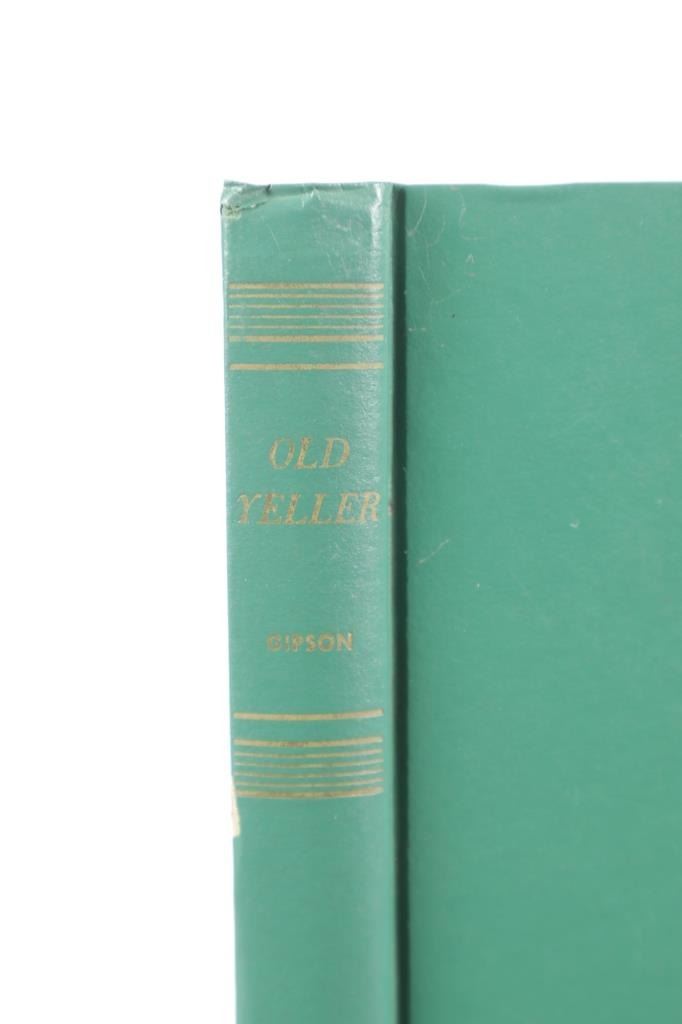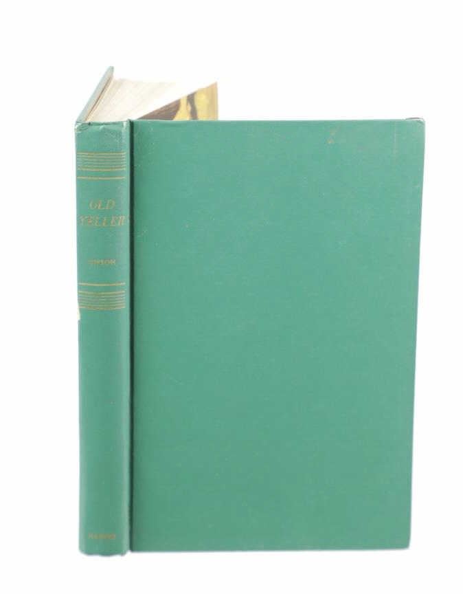 Offered in this lot is a First Edition of "Old Yeller", by Fred Gipson, Harper & Brothers publishers. 1956 children's novel written by Fred Gipson and illustrated by Carl Burger. It received a Newbery Honor in 1957. The title is taken from the name of the yellow dog who is the center of the book's story. In 1957, the Walt Disney Company released a film adaptation to universal critical acclaim. Gipson co-wrote the screenplay. "Old Yeller" went on to become an important cultural film for "baby boomers," with Old Yeller's death in particular being remembered as one of the most tearful scenes in cinematic history. This green cloth bound hardcover is in nice condition, slight scuffing to cover edges, tight spine. Intact pages exhibit slight age tanning, measures 5.5"W x 8.25"L x .75"D