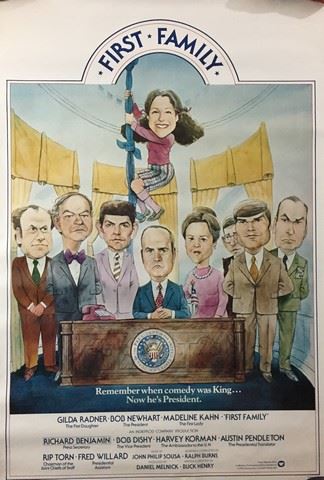 First Family (Warner Bros., 1980). One Sheet. Starring: Gilda Radner and Bob Newhart. There are creases, marks and edge wear damage. Excellent. (27" X 40").