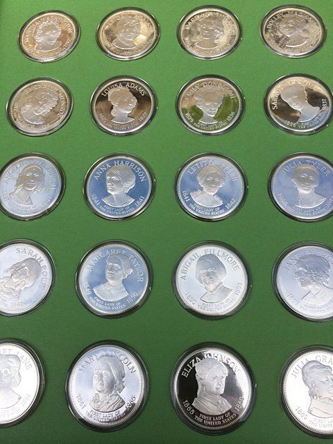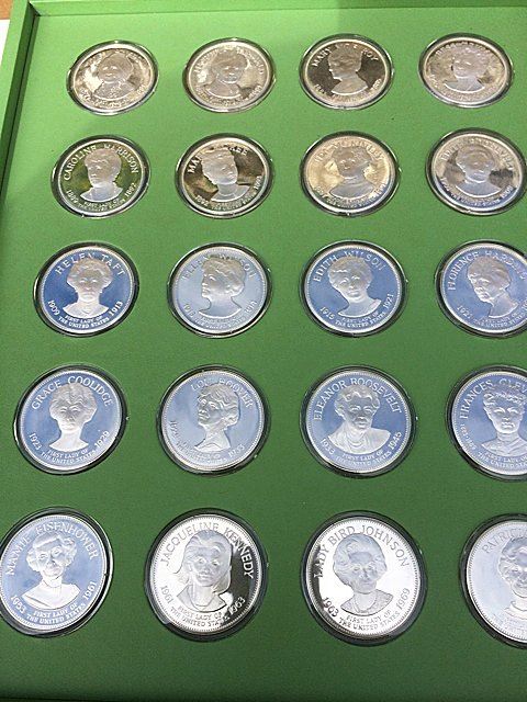 The Franklin Mint, The First Ladies of the United States, set of 40 Solid Sterling Silver coins, weighs approx. 41.6 troy oz. of sterling silver.