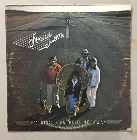 "First Love, Nothing Can Keep Me Away" (1981) autographed vinyl record. 9 songs between both sides. Songs include "Closer to the Light", "Give It All Up", "Raise a Praise", etc. Autographs from all members of First Love are written on the back cover.
