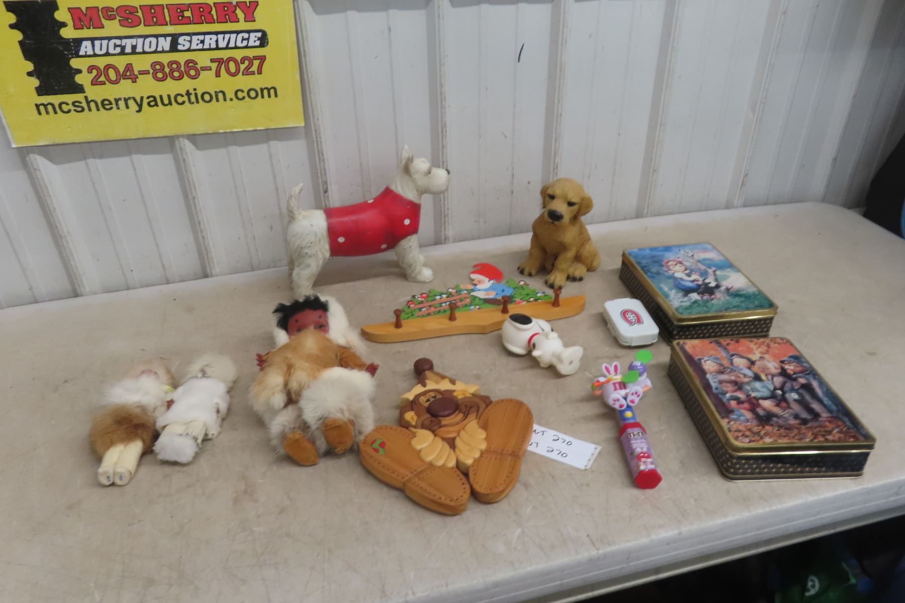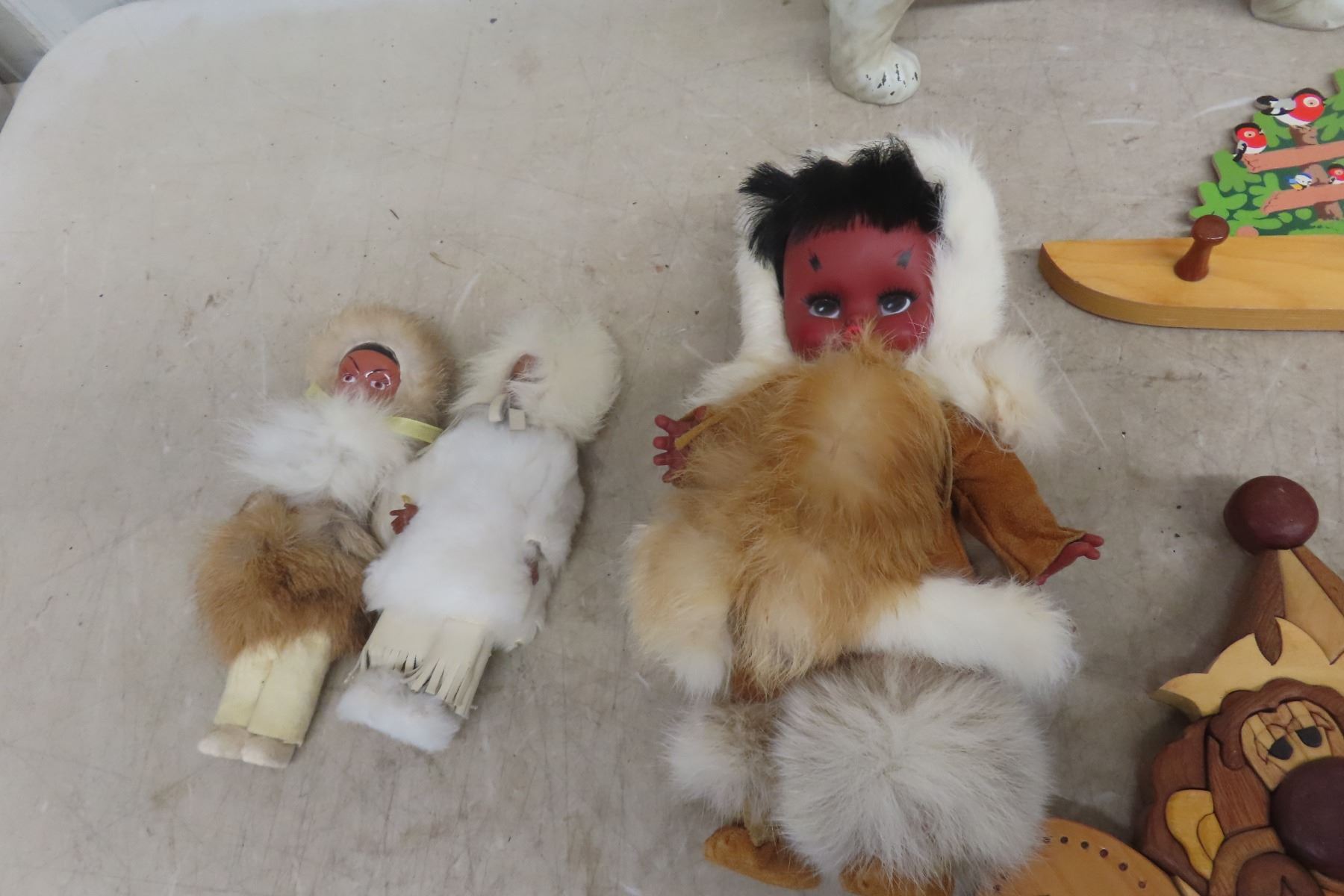 First Nation Dolls with Fur Clothing, Hummel Tins, and Scottie Dog Display