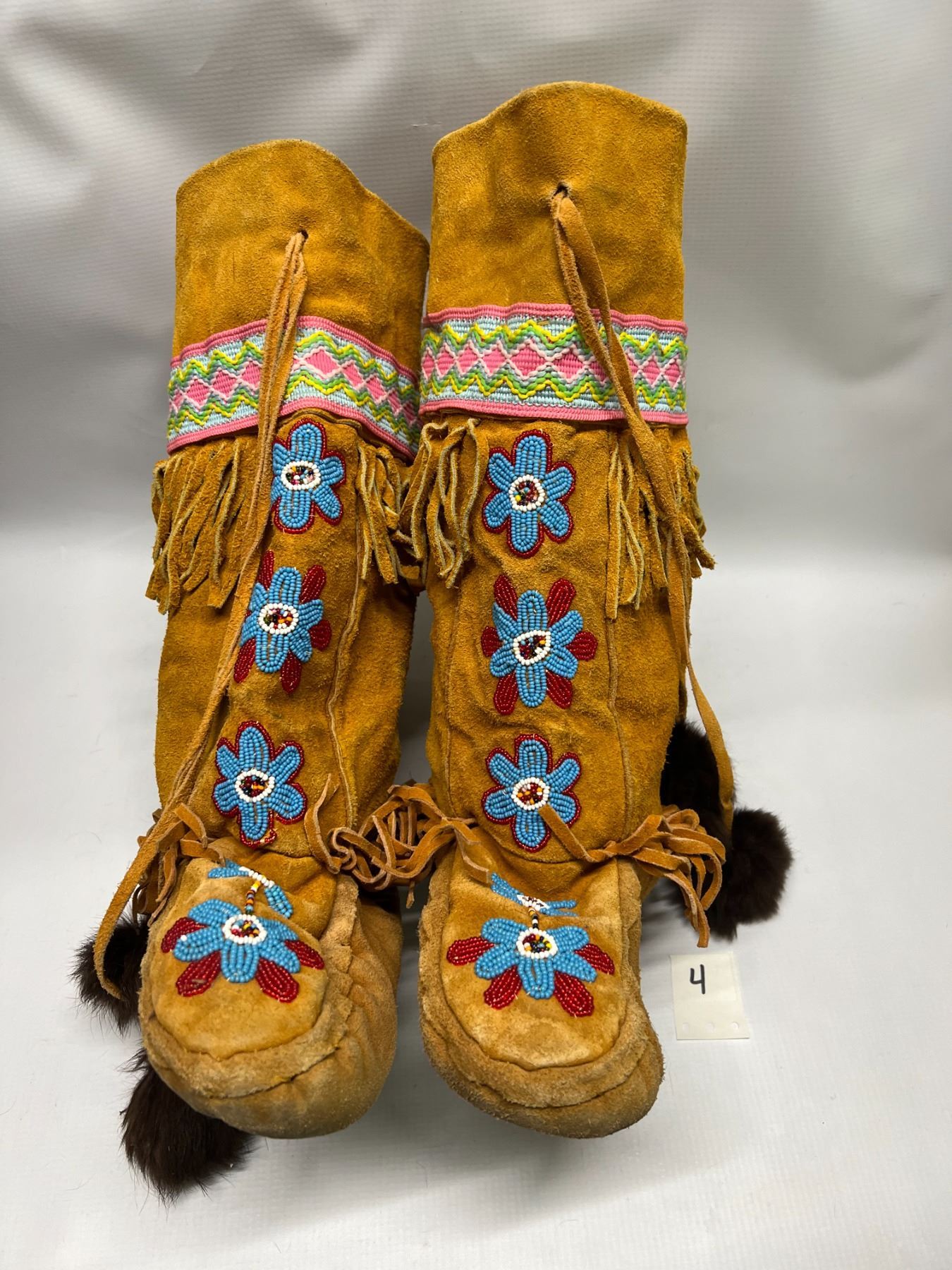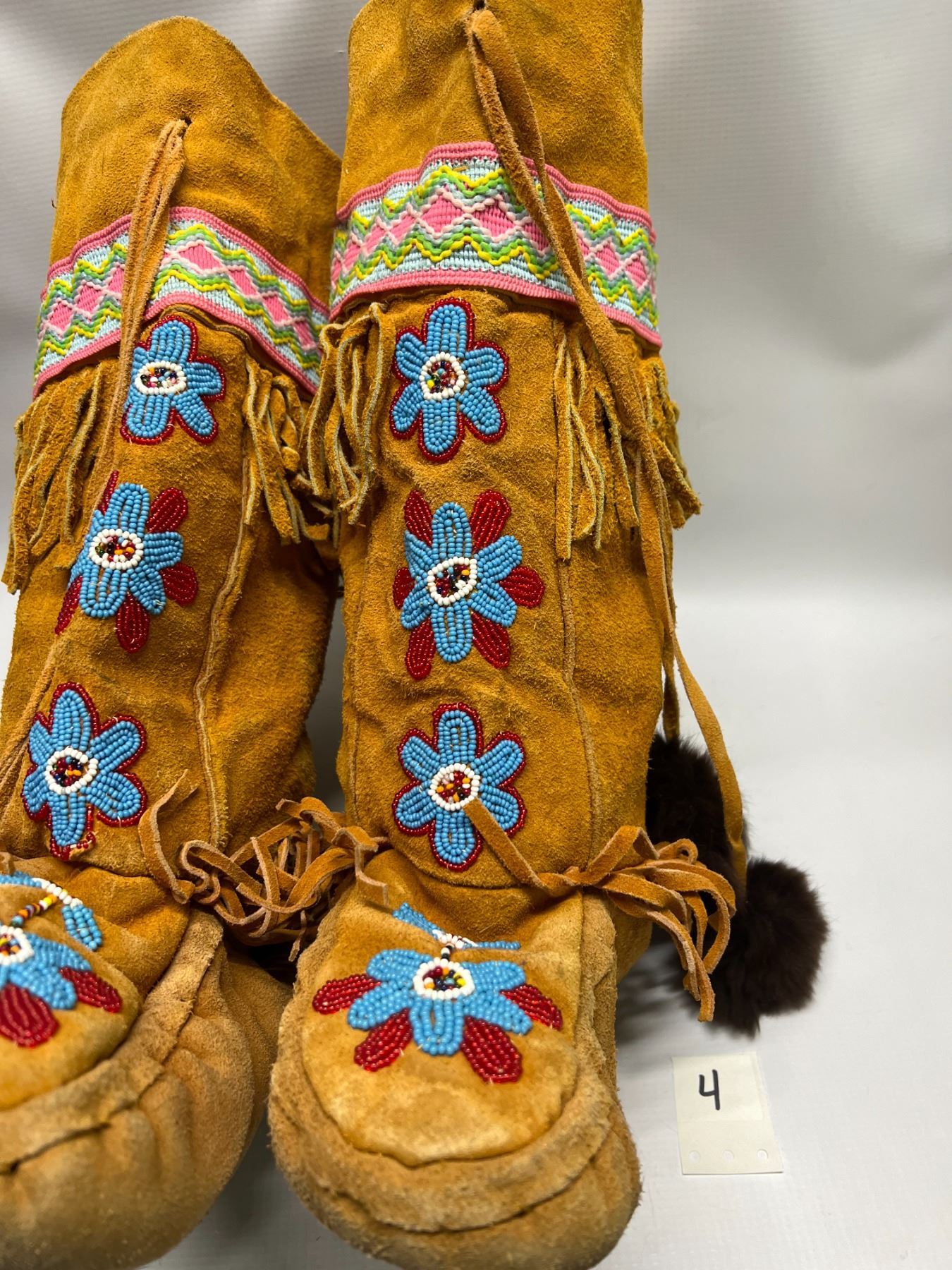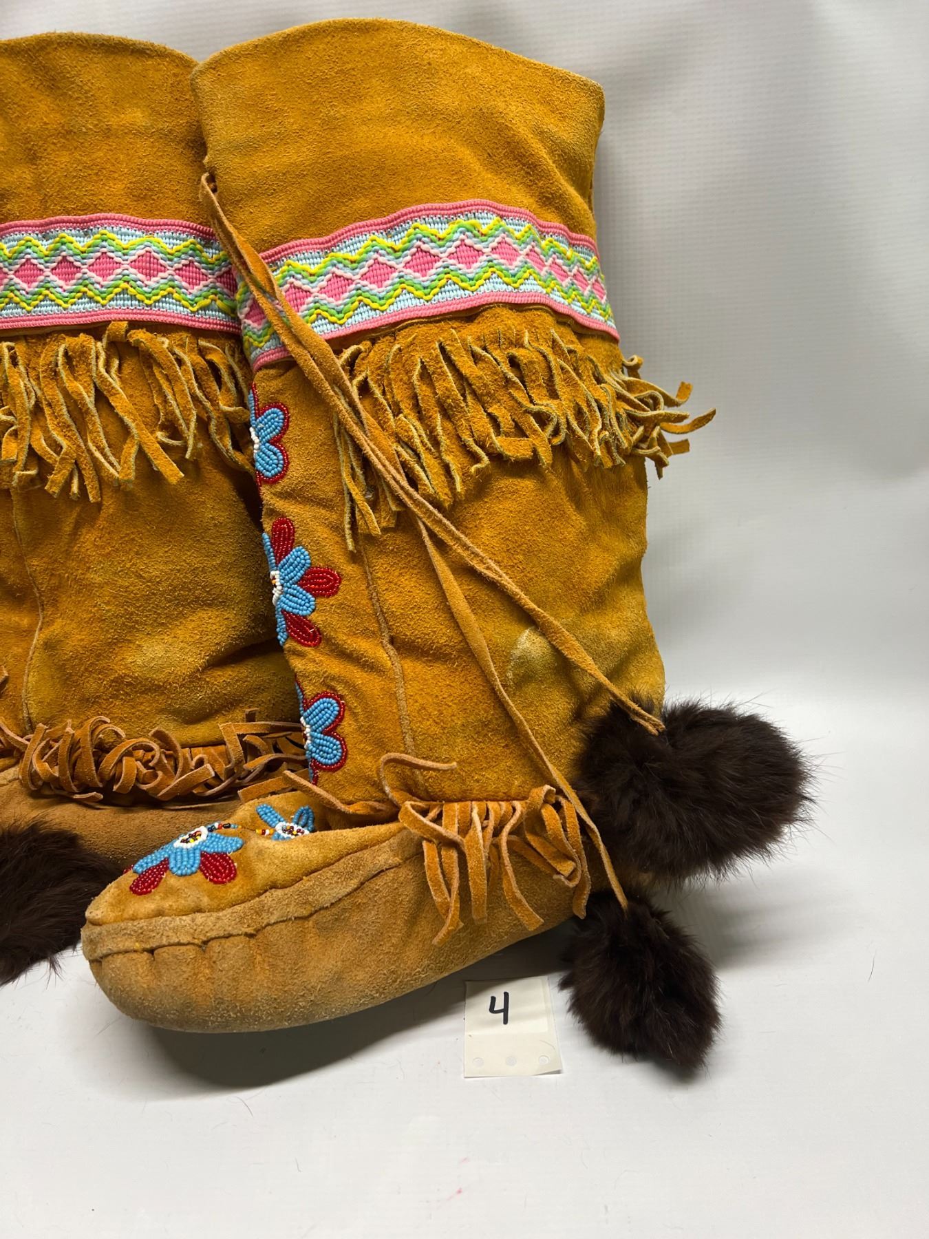 First Nations Beaded Footwear Mukluks Foot Approx: 10x3.5" & 14"Tall