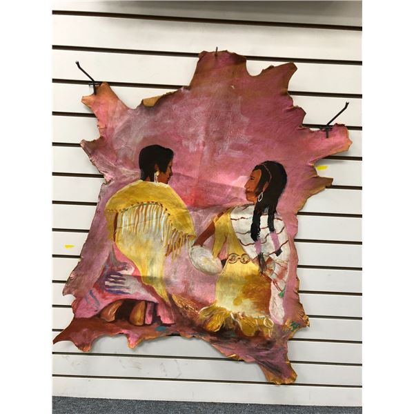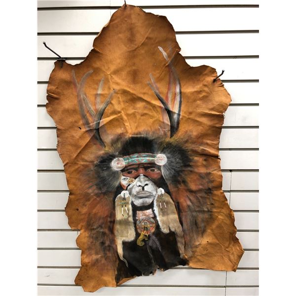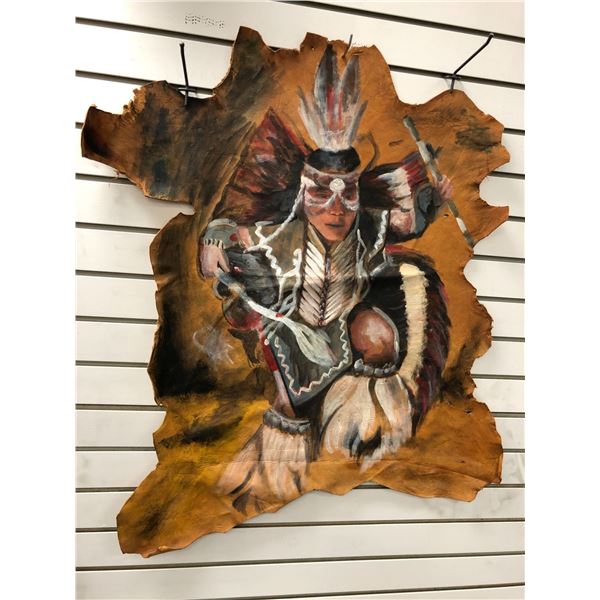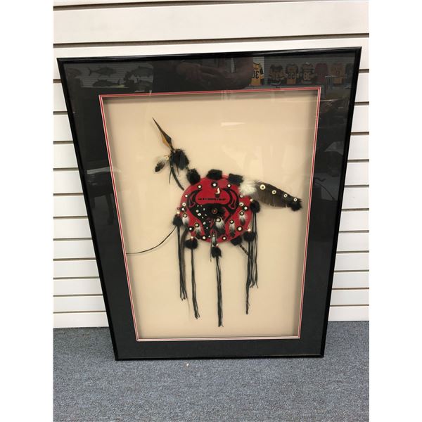 Framed First Nations ceremonial decorative piece signed by artist 1993 - approx. 26 3/4in x 35 3/4in