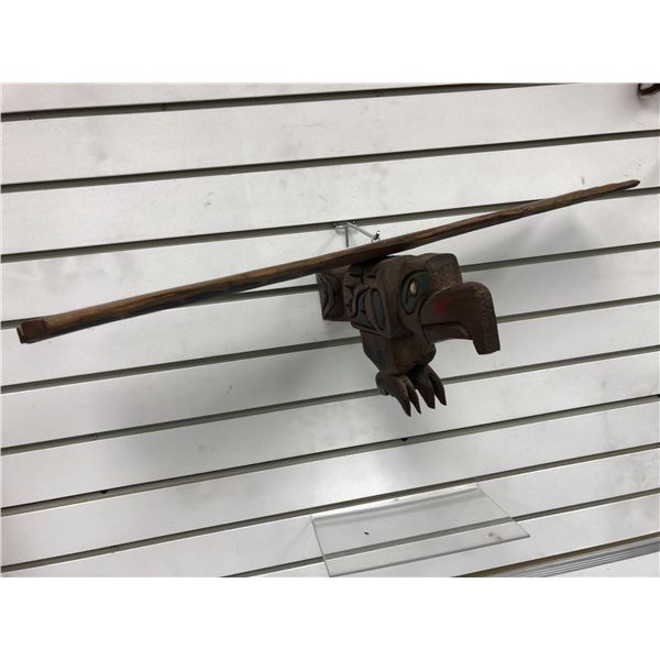 29in West Coast First Nations "Thunderbird" wood carving w/ abalone eye by Roy Wiks 1994