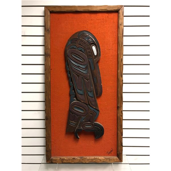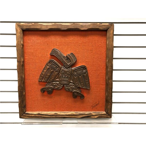West Coast First Nations carved "Raven" plaque framed & signed Thorn - 24in x 48in