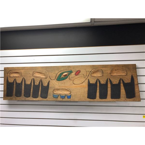 West Coast First Nations "Raven" large wood carved plank - 54in x 14in