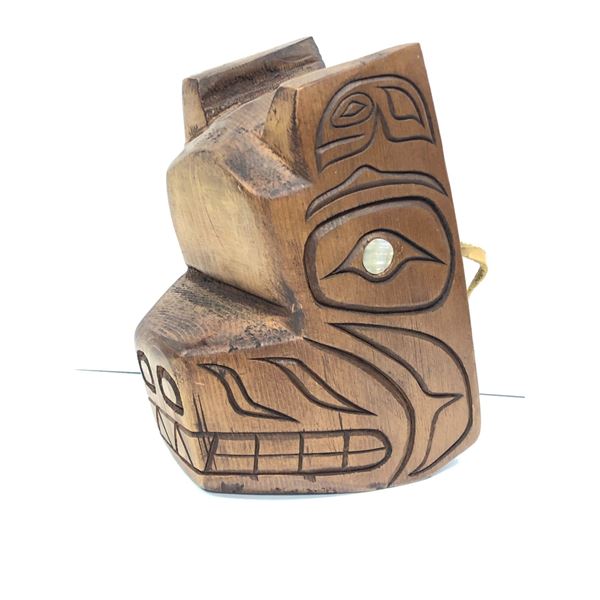 12in West Coast First Nations cedar carved totem by artist Roger Swakum
