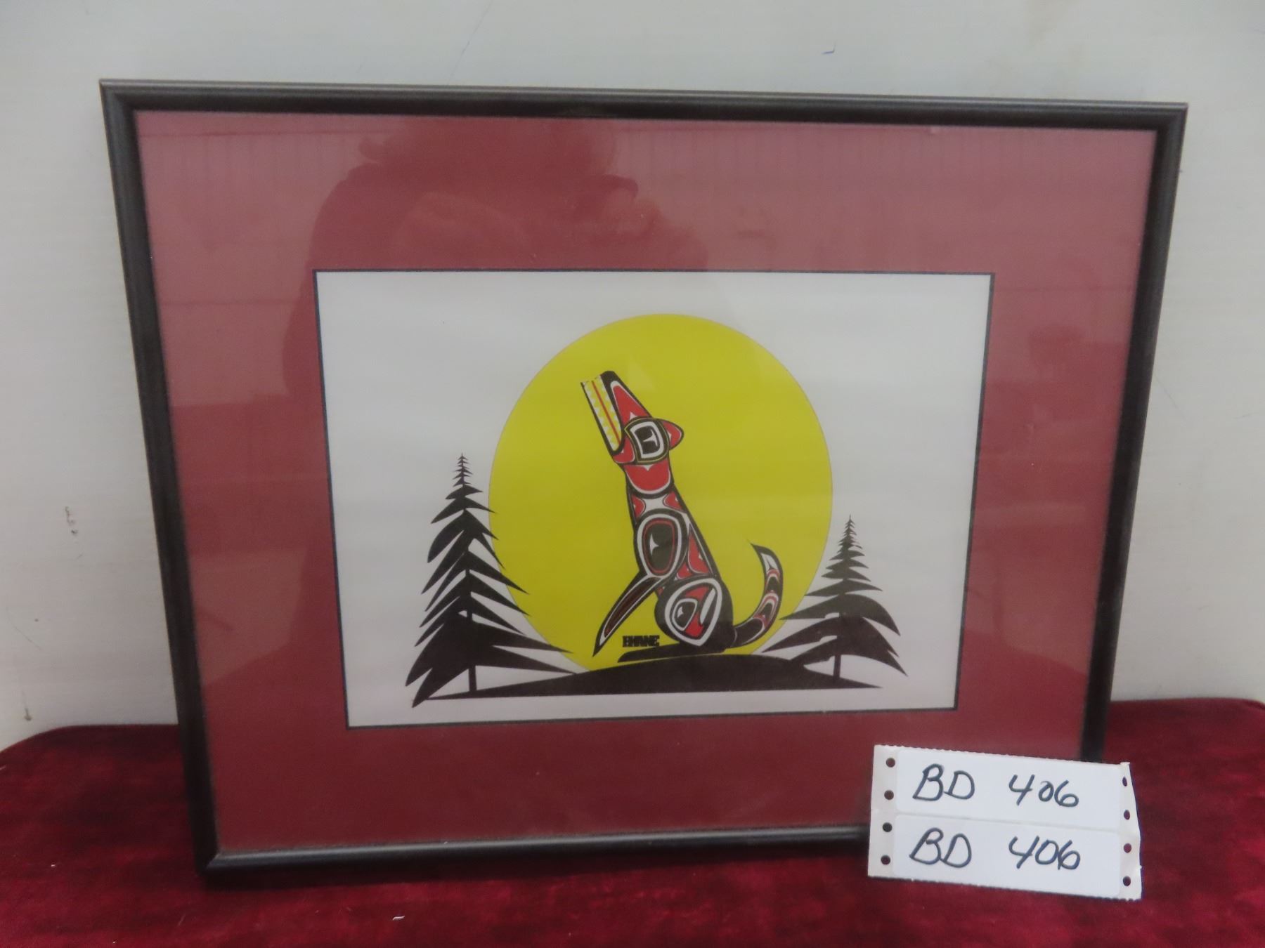 First Nations Northwest Coast Framed Print “Howling Wolf” by M.S.