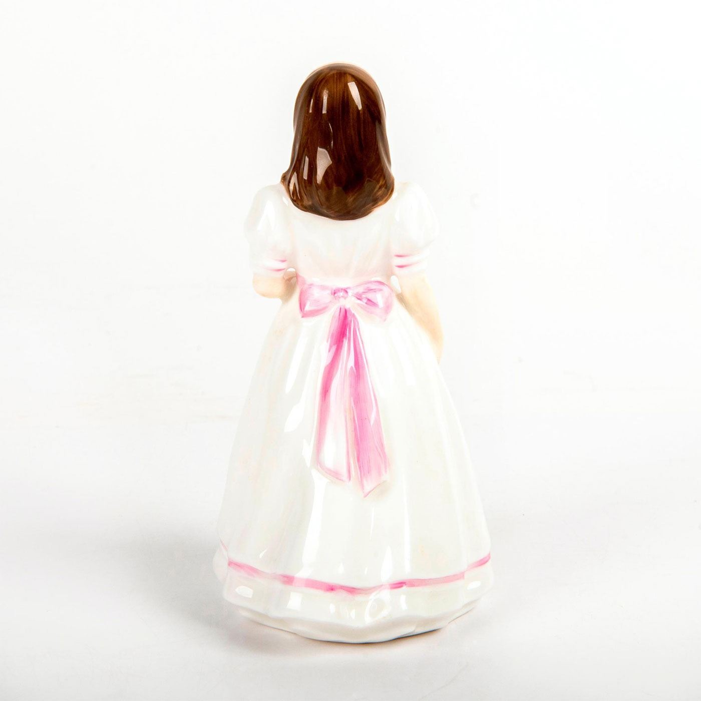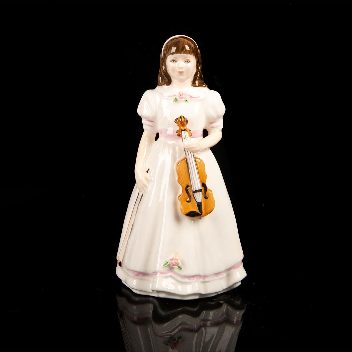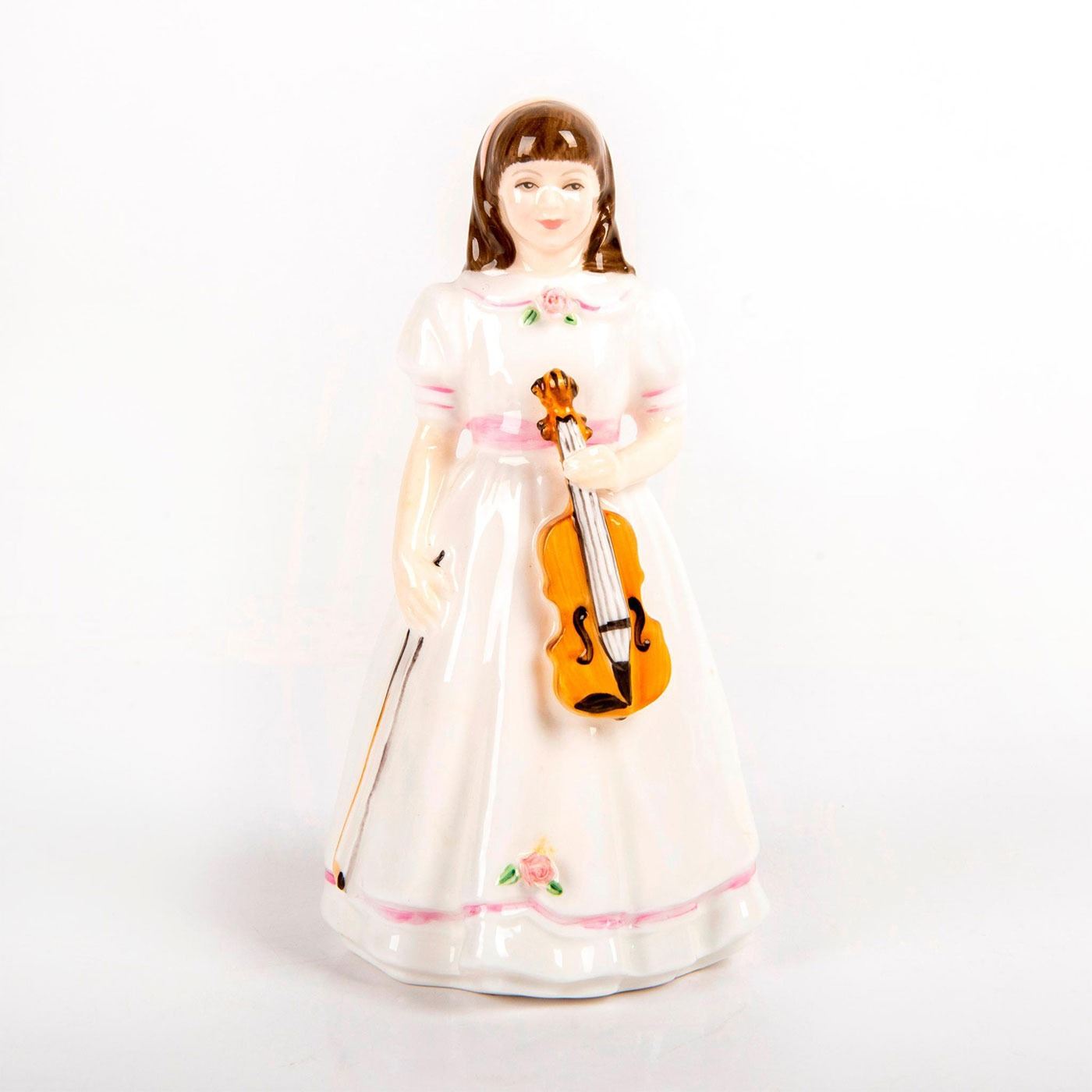 Young girl with a violin. White and pink coloration. Designed by S. Pearson.