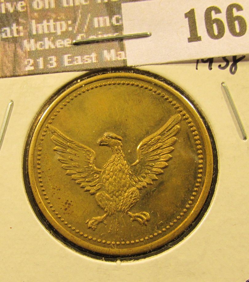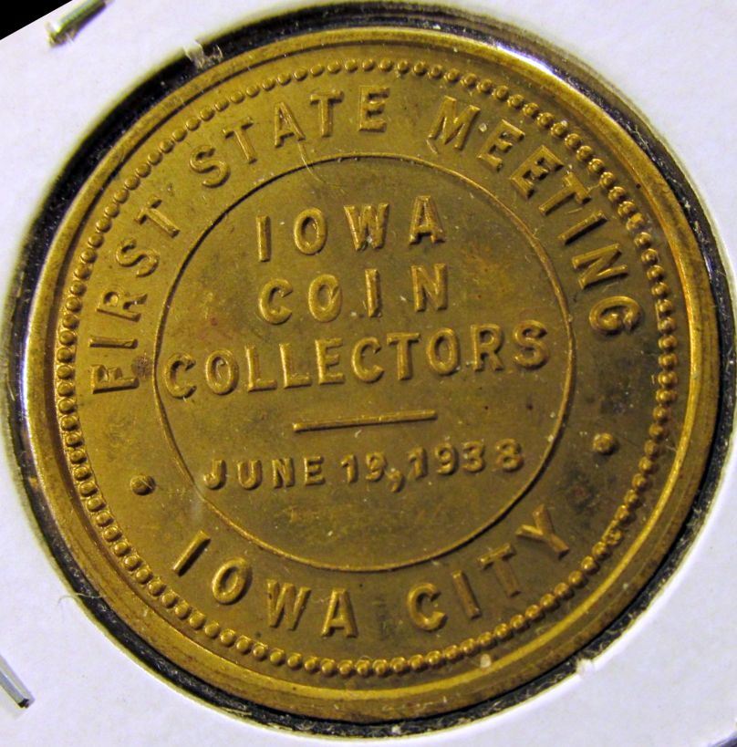 "First State Meeting/Iowa/Coin/Collectors/June 19, 1958/Iowa City", Heraldic eagle reverse. Brass, 2