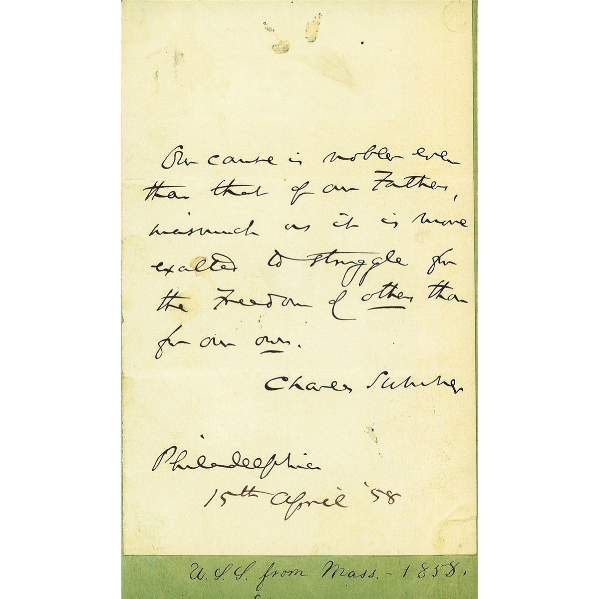 Manufactured in 1861. Old rework, rounded back strap inscribed "C. Sumner."