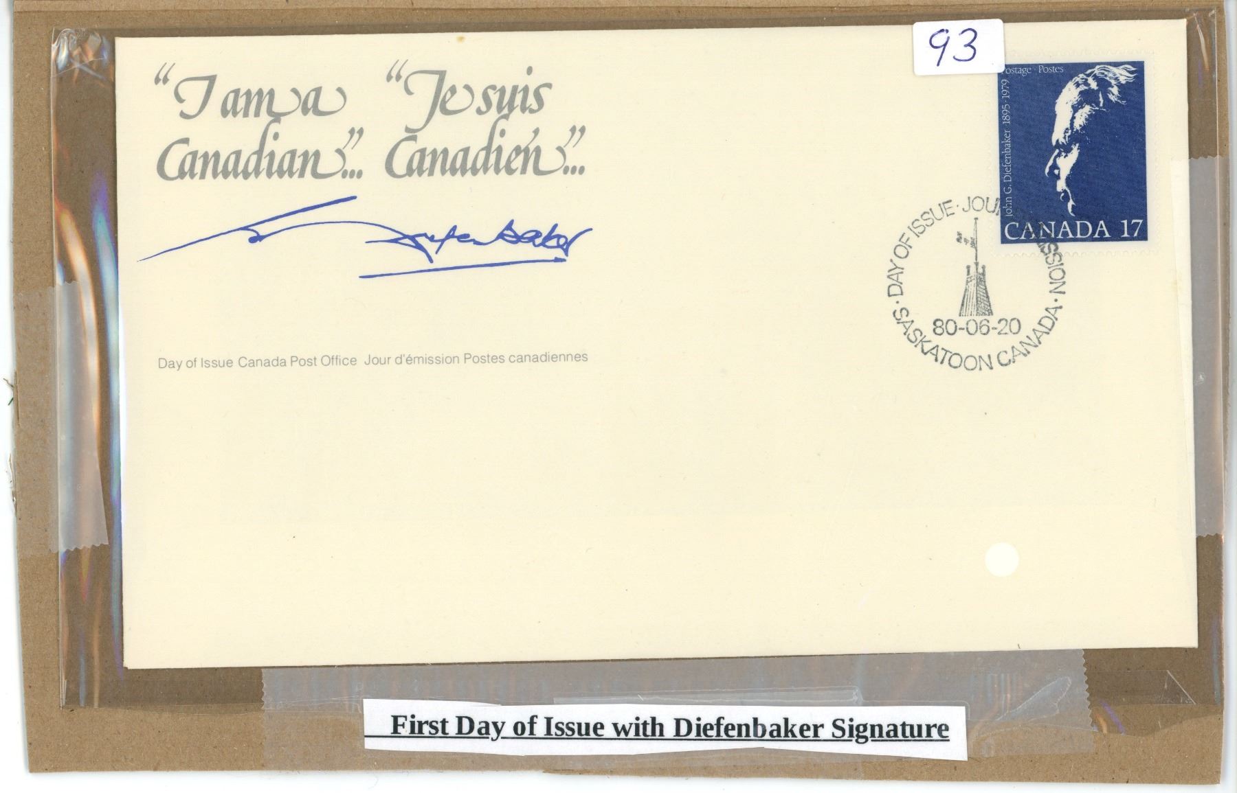 First day of issue - with Diefenbaker signature