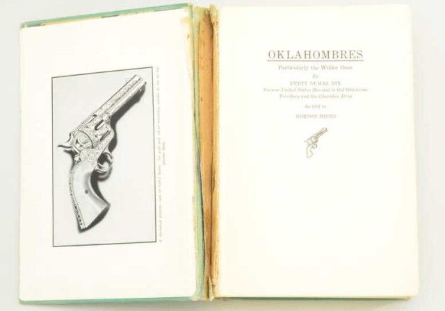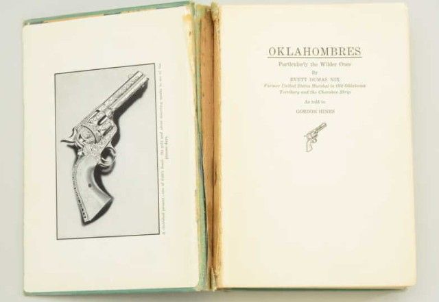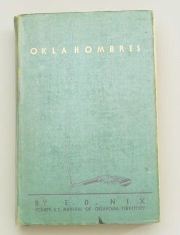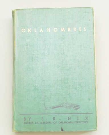 First edition (1929) of “Oklahombres” hardback book by legendary E.D. Nix, U.S. Marshal of the Oklahoma Territory in fair + condition showing some separation at the book’s spine; covers considerable first handinformation on the outlaws and lawmen of the late 1800’s-early 1900’s including the Daltons, Bill Doolin, Arkansas Tom, Henry Starr on the outlaw side and Chris Madsen, Heck Thomas, Bill Tilghman, Frank Canton andNix on the side of law and order; great Western historical reading and long out-of-print. Est.: $100-$200.