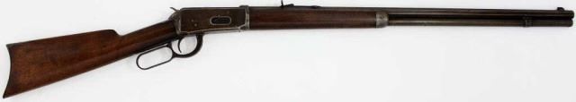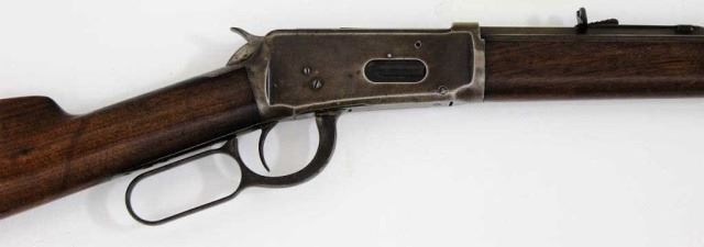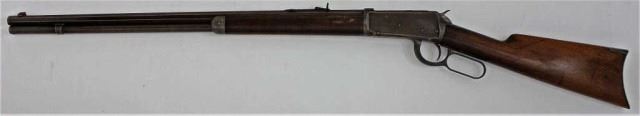 First year Winchester 1894 .32-40 cal. SN 24XXlever action rifle, 26" octagon barrel, full magazine with standard walnut stocks, rifle remains in very good original condition, the barrel, magazine tube, lever and receiver showing a pleasing brown patina, walnutstocks fine, a very clean first year manufactured 94 with excellent action and good bore. Antique.
