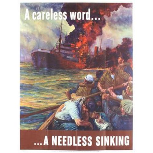 Notes:A Careless word. a needless sinking Artist: Anton Otto Fischer, 1942 Dimensions: 28 x 22 inches OWI Poster No. 24 Office of War Information, Washington, D.C U. S. Government Printing Office :1942--O-502219 A Careless Word -- a Needless Sinking: A History of the Staggering Losses Suffered by the U.S. Merchant Marine, both in Ships and Personnel, during World War II, by Captain Arthur R. Moore, American Merchant Marine Museum, U.S. Merchant Marine Academy, Kings Point, N.Y. Captain Arthur R. Moore has devoted more than 20 years gathering data on the vital role played by the American Merchant Marine in winning World War II. The Dennis A. Roland Chapter of the American Merchant Marine Veterans is offering the New Edition recently updated by Captain Moore. It now includes Panamanian-flag ships on which many American seamen and U.S. Naval Armed Guard served and died without recognition. A Careless Word - A Needless Sinking is the most authoritative and complete documented account of the catastrophic losses suffered by the American-flag Merchant Fleet, both in ships and personnel, during World War II. Any one reading Captain Moore's will wonder why American mariners had to wait 42 years to gain recognition and veteran status, and ...
