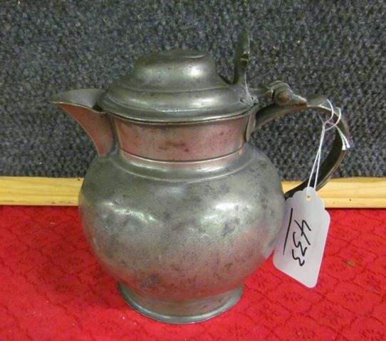 1700's Fish Handle Beer Pitcher with lid, initialed