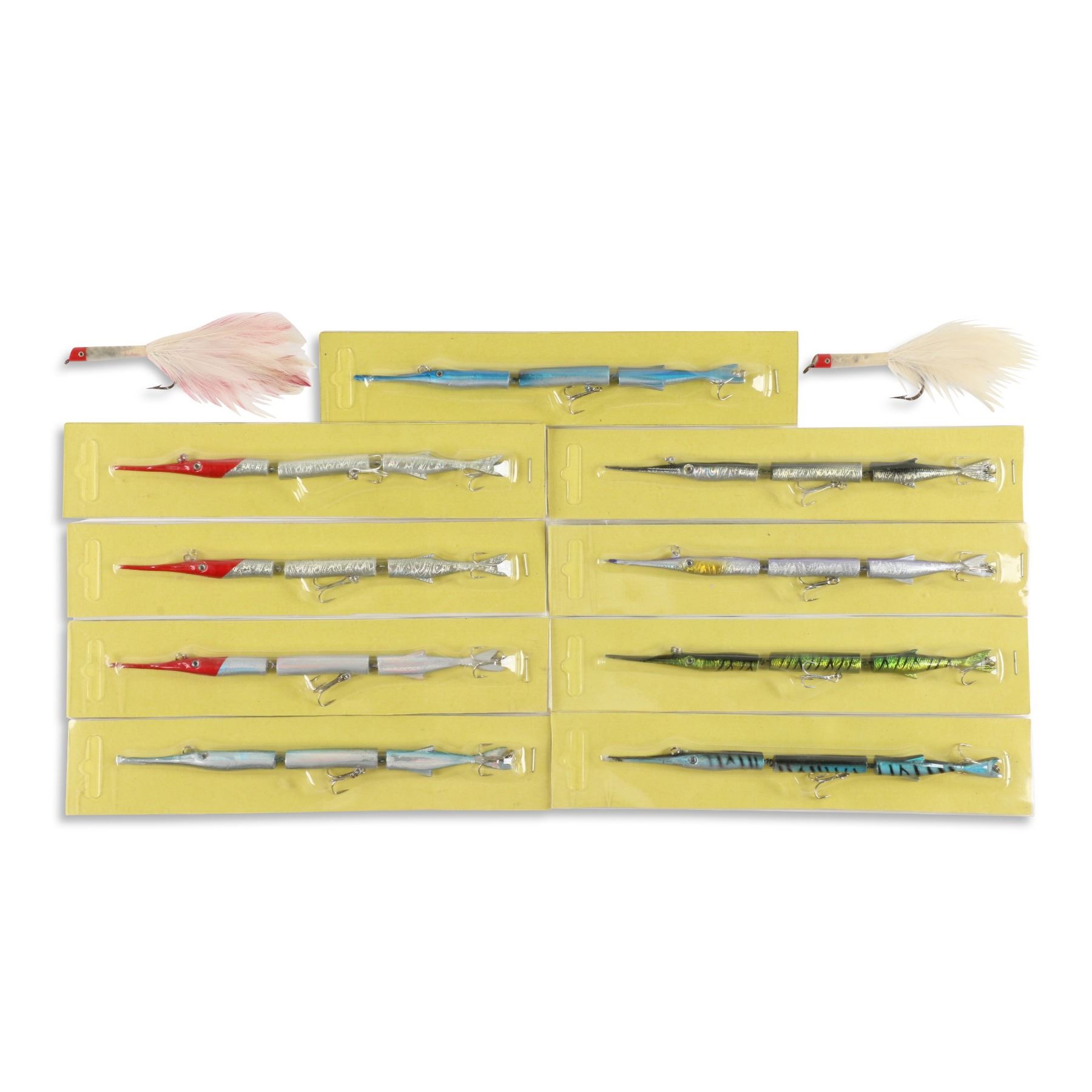 Fish Master Lures Ltd., Canada. Material: Mixed. Quantity: 11. Grade: VG+. 2" - 8" each. Est. $75-100.