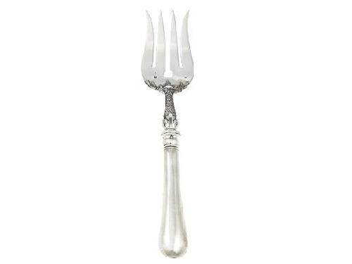 Silver, 116 g. Plain terminal. Cast, scaly and acanthus leaf stem, four pronged fork. Marked: Vienna, circa 1880, Ladislaus Jarosinski. Neuwirth: I/273. Length: 25 cm