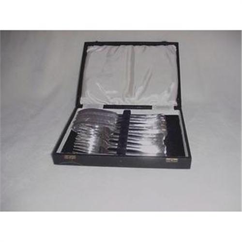 Silver plated fish set for six. 6 knives and 6 forks. Forks are 6 5/8" long. Knives are 7 3/4" long. (In fitted case) Marked, "H.B. & H. A1alpha plate"