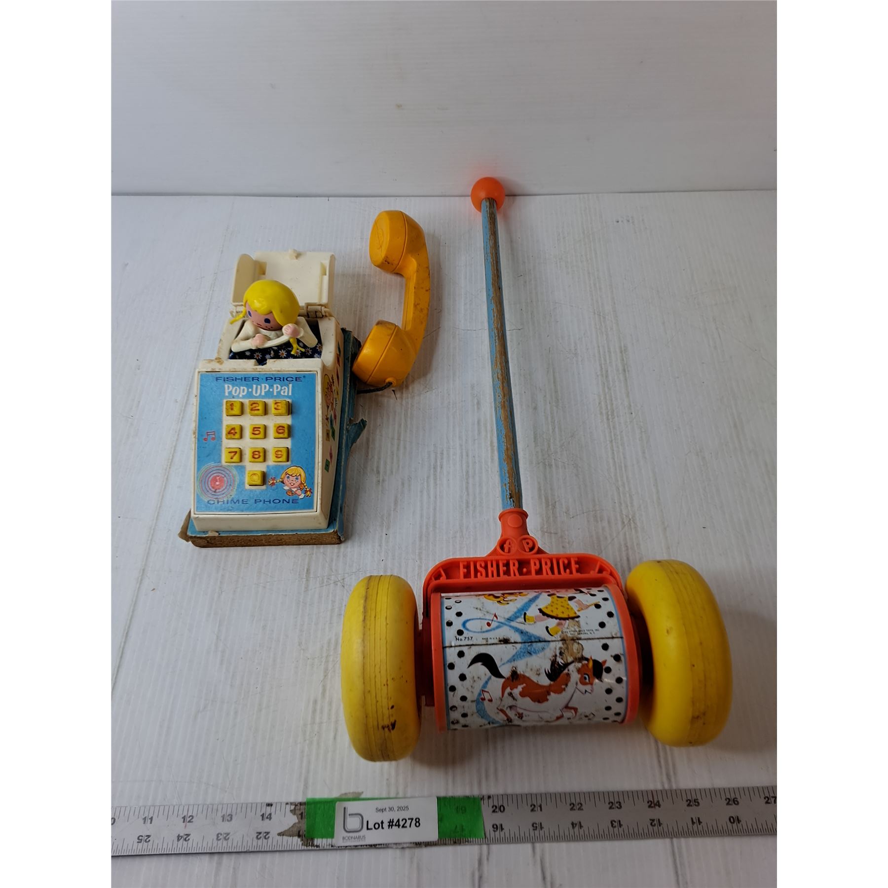 Fisher Price Chime Phone- As Is & Chime Roller Push Toy- Has Sound