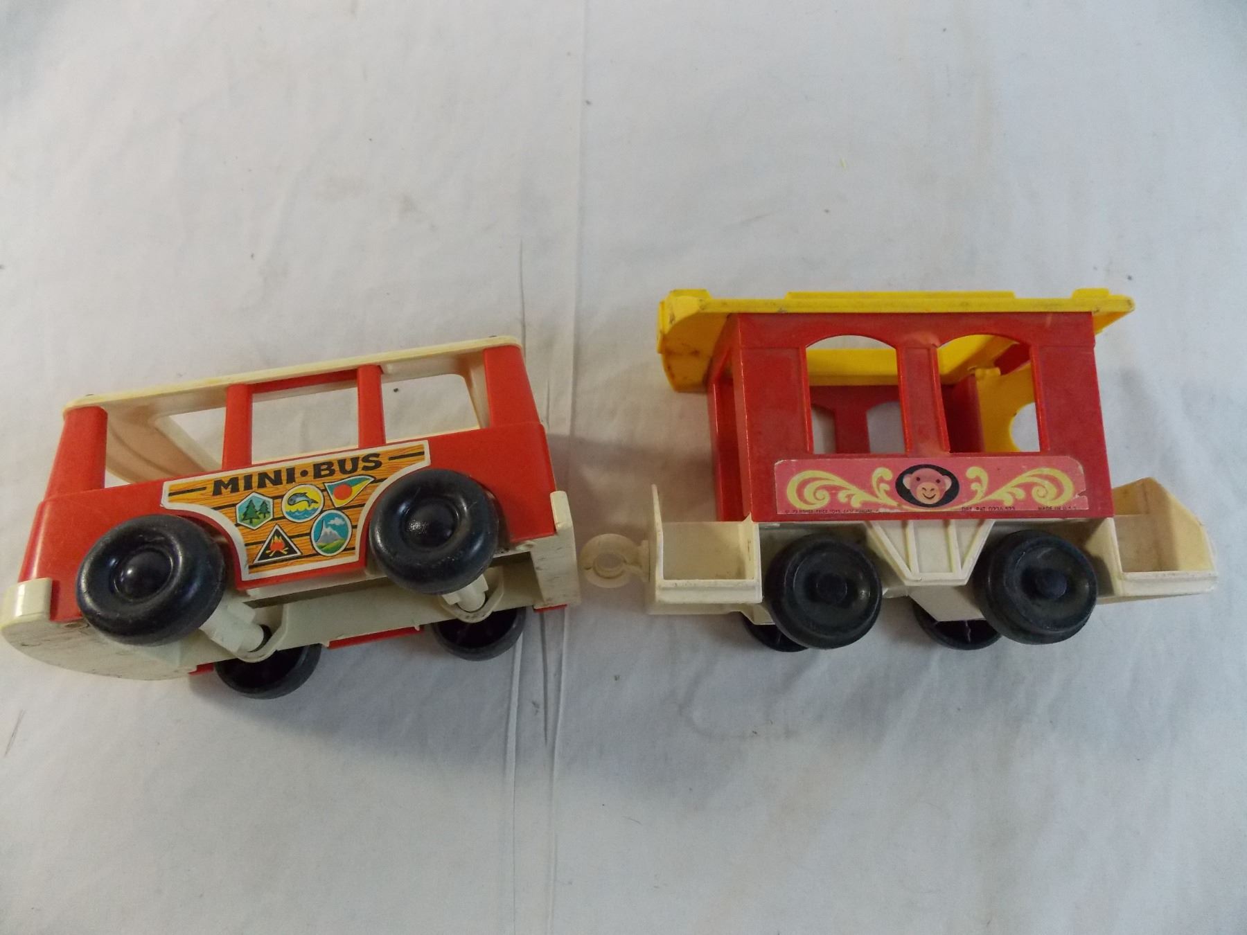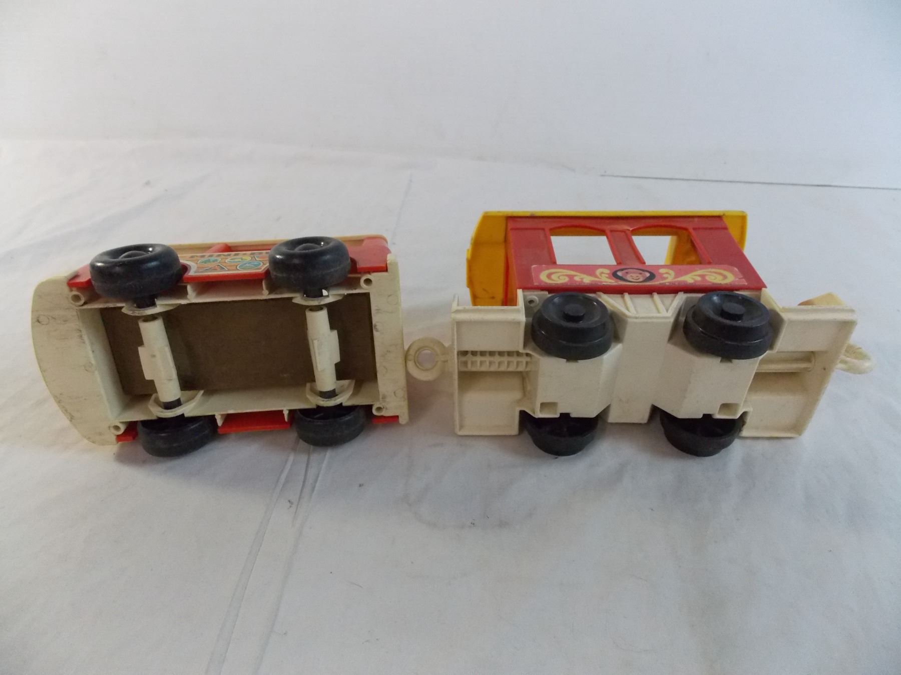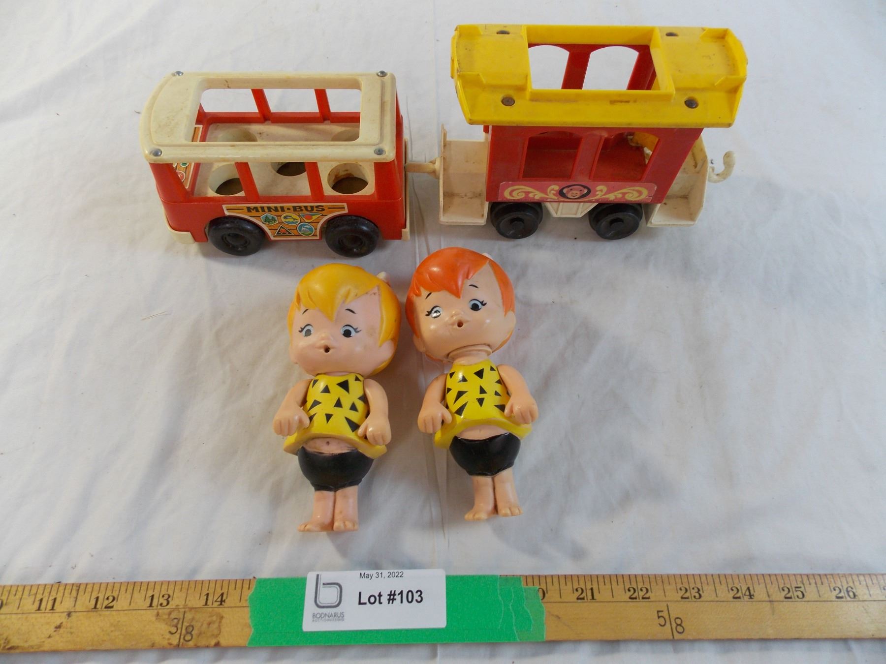 Fisher Price bus + circus cart + (2) Flintstones plastic dolls