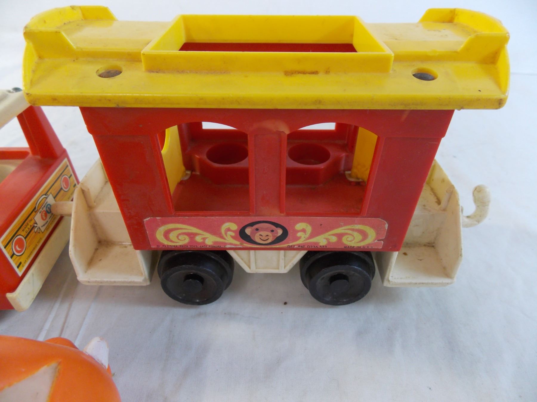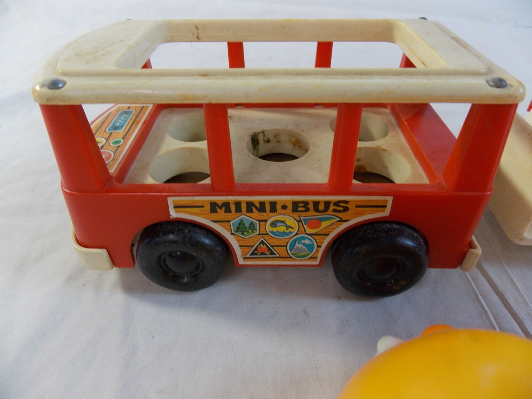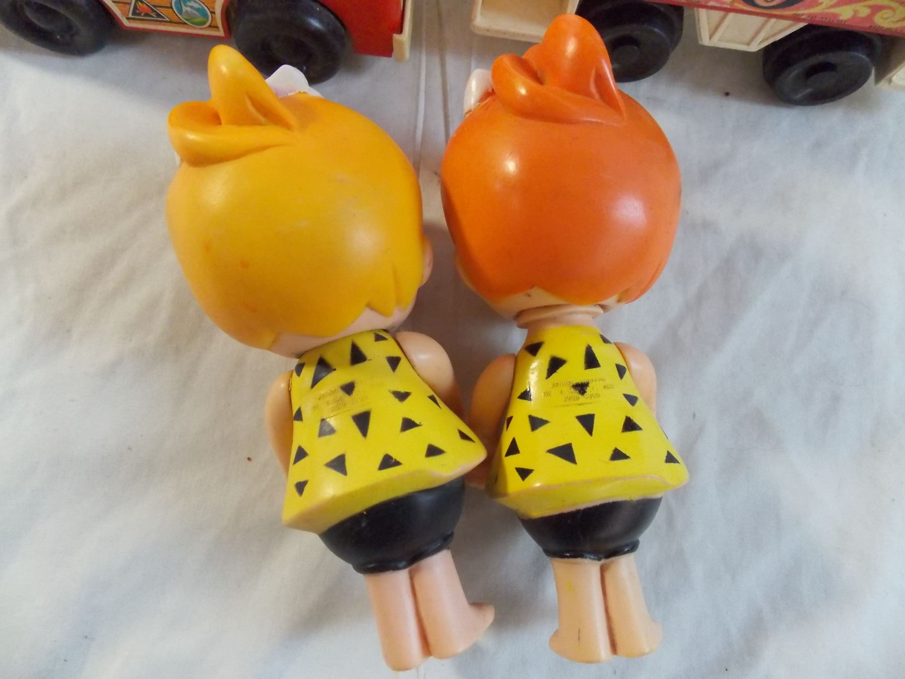 Fisher Price bus + circus cart + (2) Flintstones plastic dolls