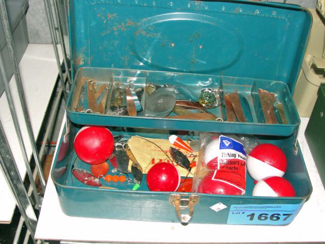 Fishermans tackle box and contents