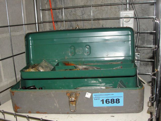 Fishermans tacklebox filled with fly tying feather