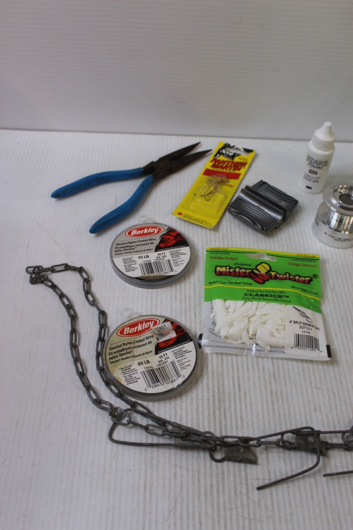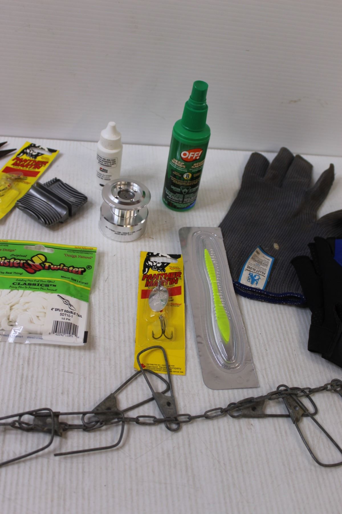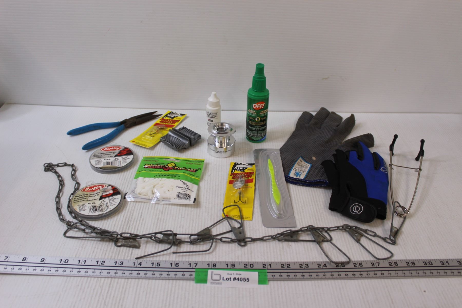 Fishing Gloves, Pickerel Rig, Reel, Pilers, Jig Package, Misc.