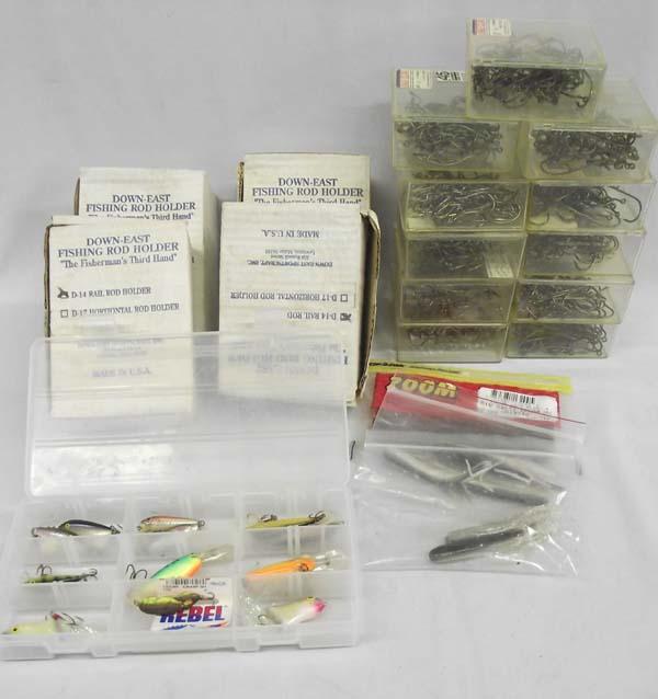 Collection of Fishing Hooks & D-14 Rail Rod Holders, Plus. Eagle Claw brand hooks, largest hooks are 4/0. Buyers Pay Actual Shipping and Handling Charges(see terms and conditions for more information).