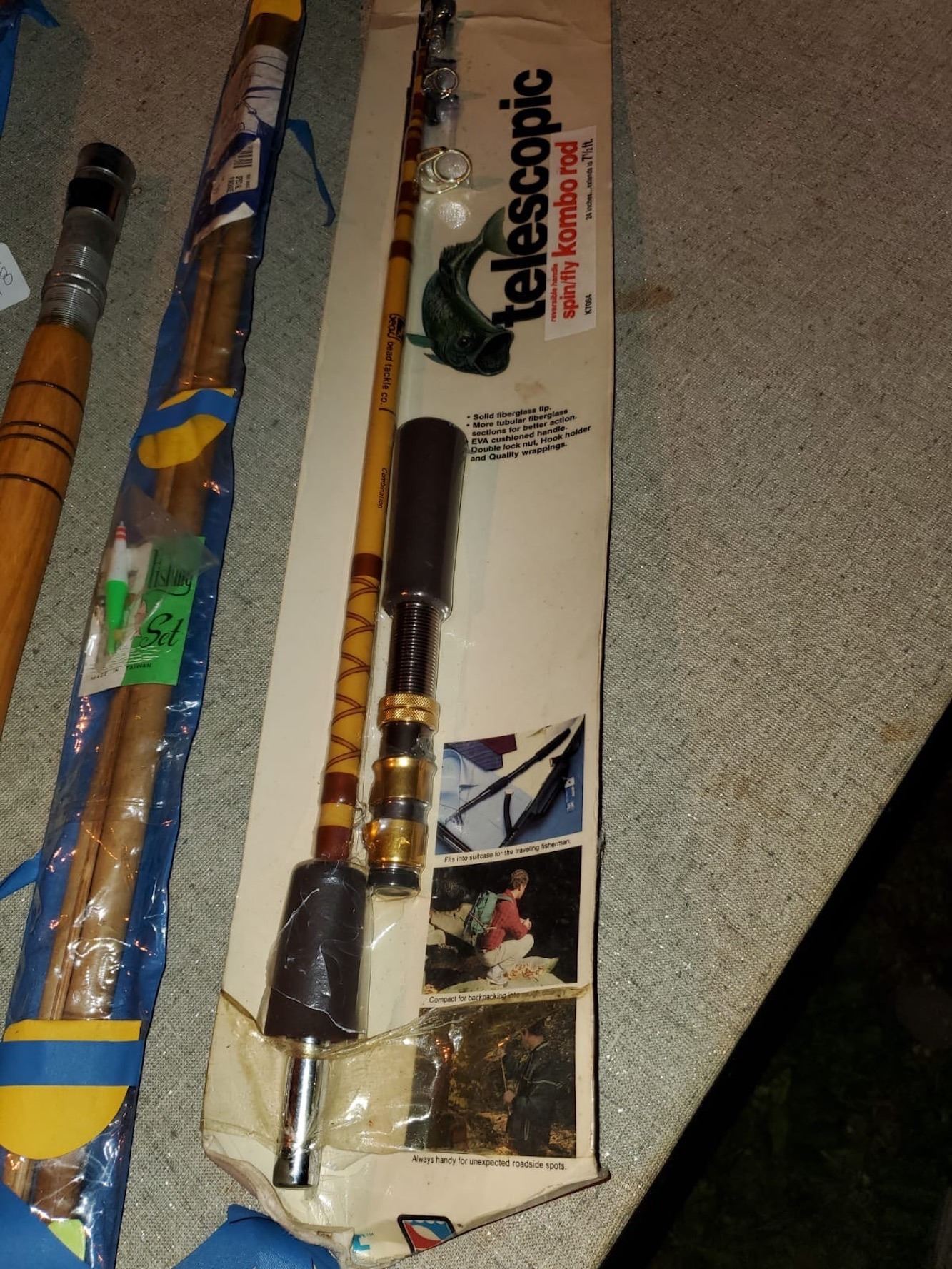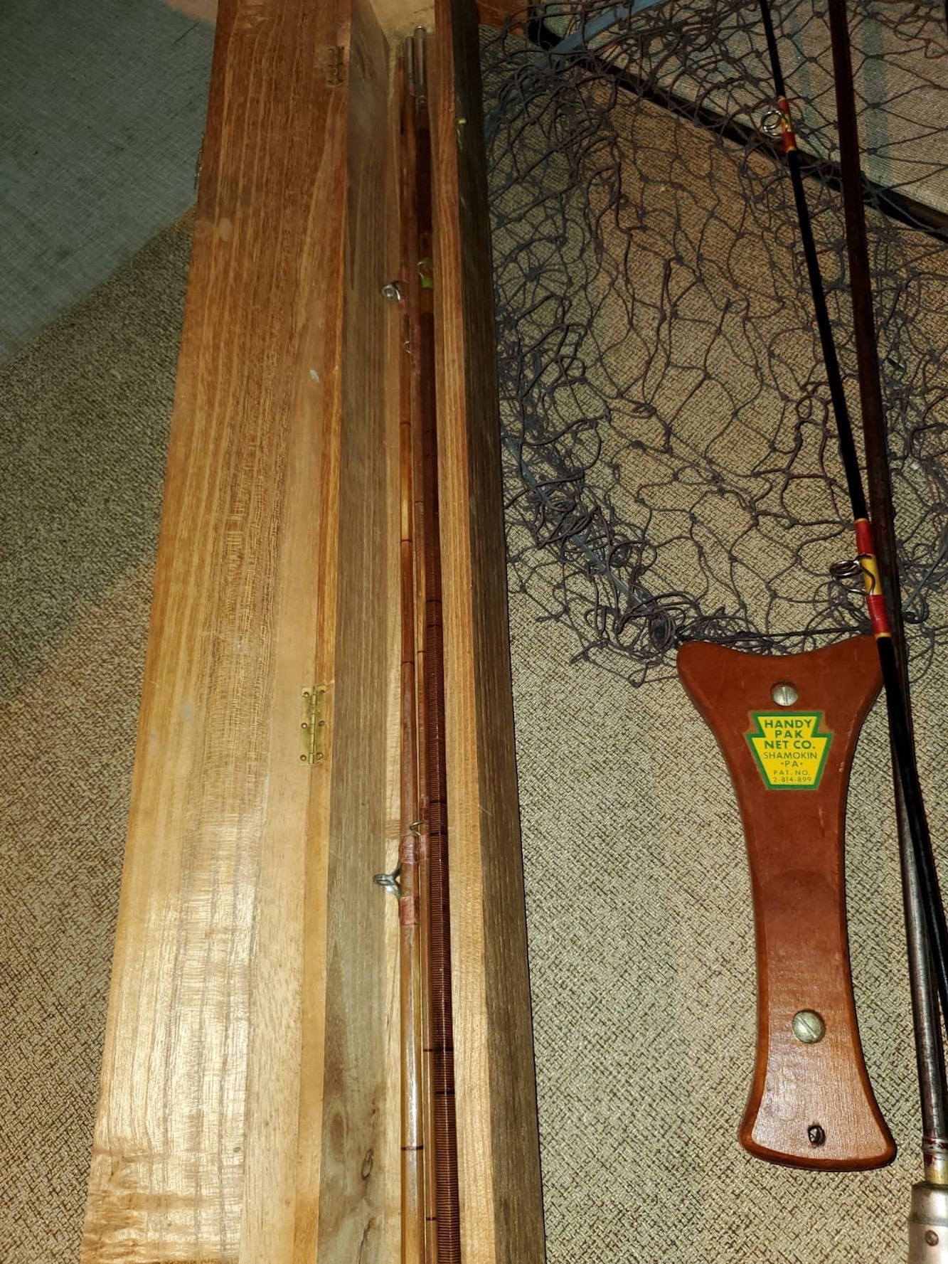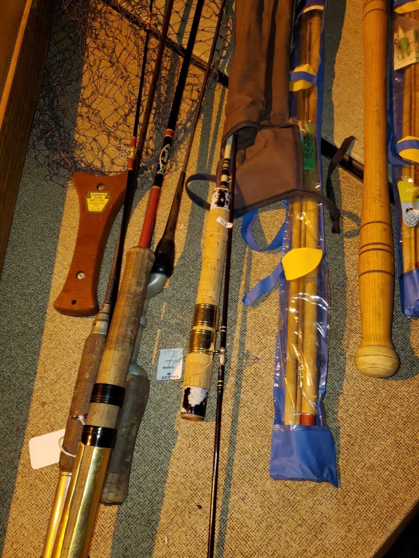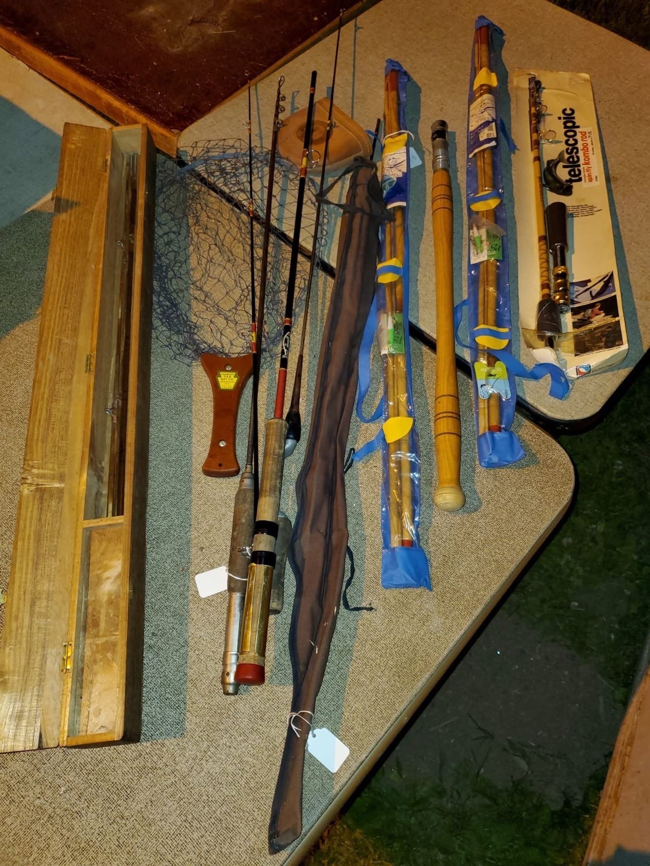 Fishing Lot includes fly fishing rods, telescope rod, net, etc. Nice estate fishing lot!