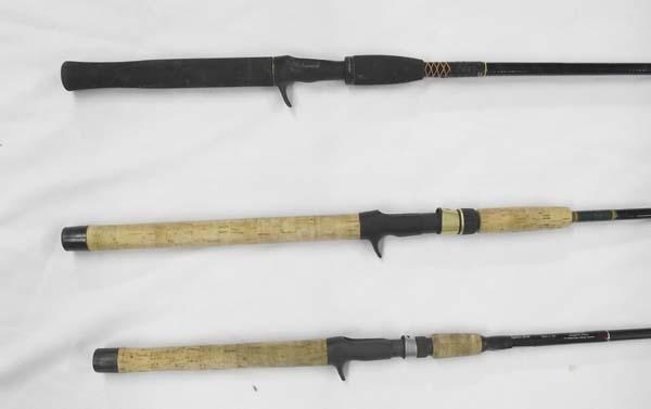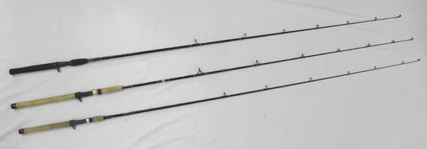3 New Fishing Rods. Includes: Shakespeare CAL 1100 6'6'' Ugly Stick Medium Action; Lynn Big Bear 6'6'' handmade Medium Action Rod with cork handle, breaks down in two sections; All Star GT2 6'6'' Composite Grahpite/Glass medium heavy with cork handle. MUST BE PICKED UP.