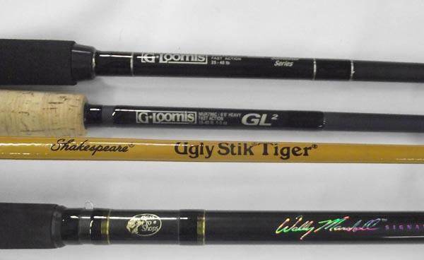 4 New Fishing Rods. Includes: 2 G-Loomis rods, 1 6ft 6'' and 1, 7 foot. Wally Marshall model #IM6 Grafite Telescoping rod. Shakespeare Ugly Stick Tiger fishing rod, 5 foot 6''. MUST PICK UP!